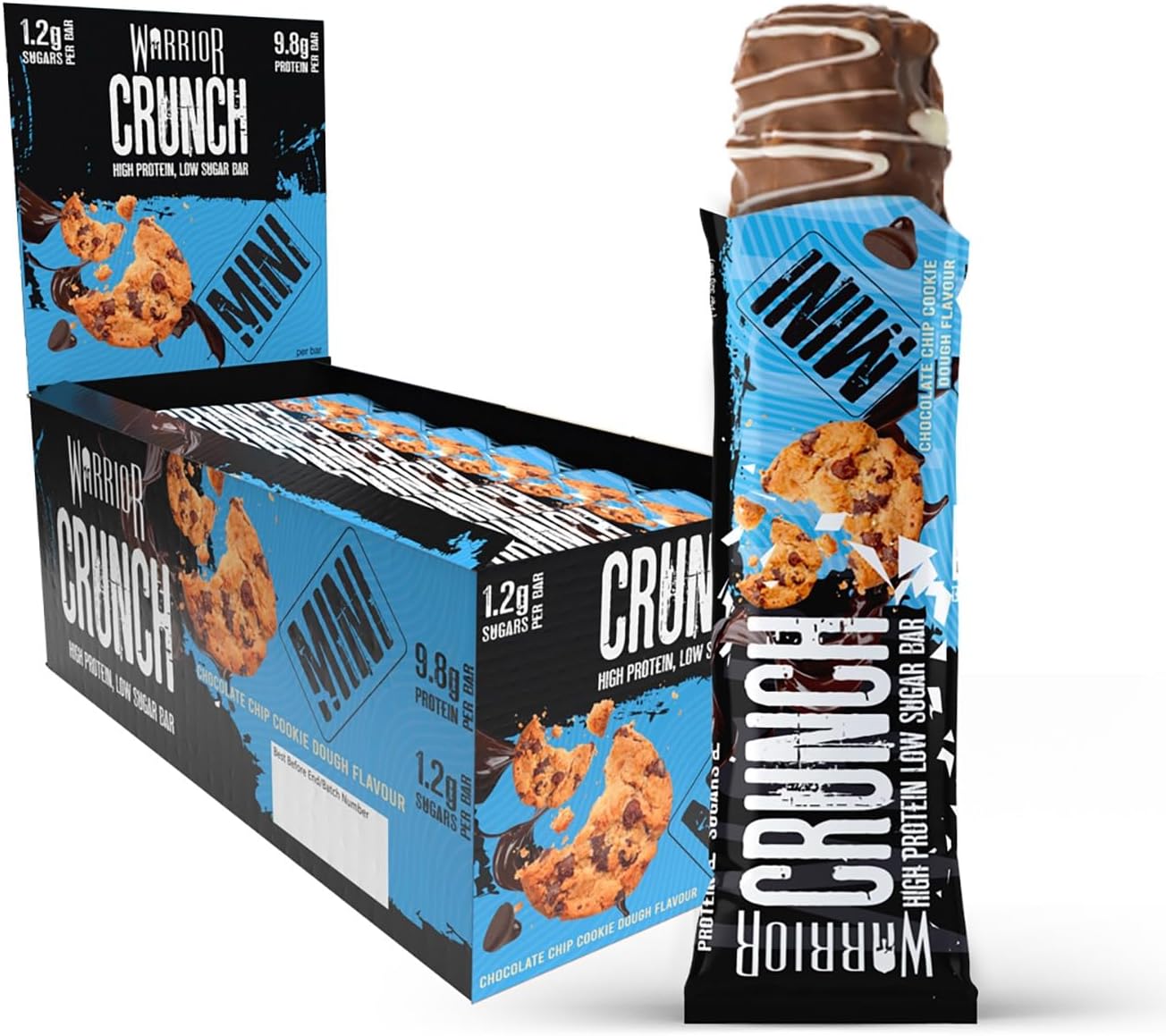Warrior Crunch Mini (Snacksize) – Protein Bars – 9G+ Protein Per Bar – Low Carb, Low Sugar Snack – 24 Pack X 32G (Chocolate Chip Cookie Dough)
