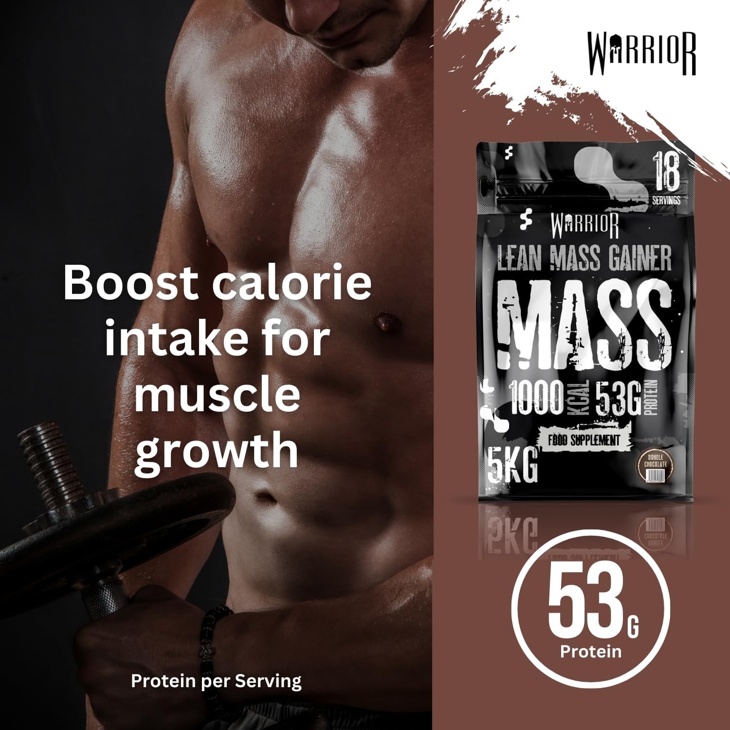 Warrior Mass Protein Powder – 5Kg – Serious Mass Gainer – High Calorie, Weight Gain Supplement – 61G Of Protein, 18 Servings, 1000+ Calories Shake, Supports Muscle Growth (Double Chocolate, 5Kg)