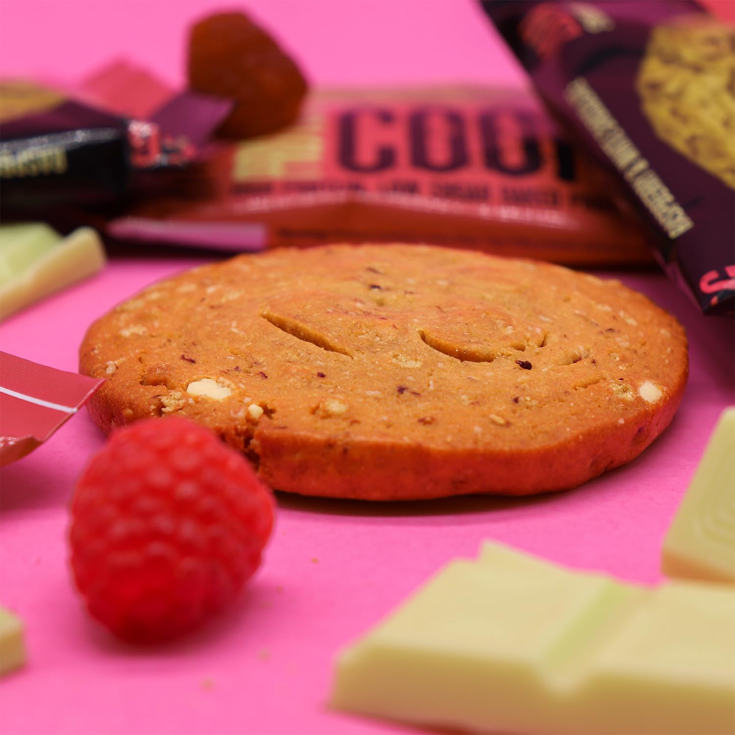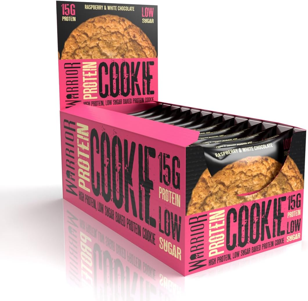 Warrior Protein Cookies – 15G Of Protein – Low Sugar – Baked Cookie Snack – 12 X 60G – Individually Wrapped – Vegetarian Friendly, Raspberry & White Chocolate