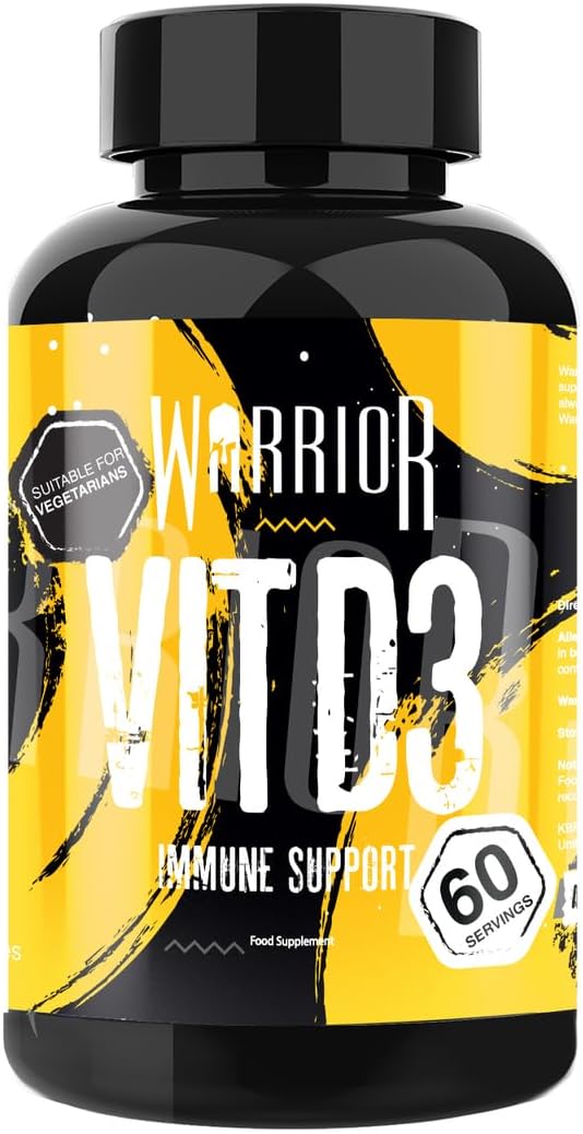 DESCRIPTION : Product Description Warrior VIT D3 contains a whopping 4000IU of Vitamin D3 per capsule, helping to support strong bones, a healthy immune system, and more. Especially useful as it isn’t always possible to get your Vitamin D3 from sunlight, which is where Vit D3 from Warrior comes in! Ingredients Dicalcium Phosphate, Microcrystalline Cellulose, Magnesium Stearate, Silica P.when('A').execute(function(A) { A.on('a:expander:toggle_description:toggle:collapse', function(data) { window.scroll(0, data.expander.$expander[0].offsetTop-100); }); }); Directions Directions: Take 1 Capsule daily with food Safety Warning Warnings: Please discontinue use if you experience any adverse reactions. Note: To be used in conjunction with a varied and balanced diet and healthy lifestyle. Food supplements are not to be used as a substitute for a varied diet. Do not exceed the recommended daily dose. Allergen Information: For allergens contained in this product, see ingredients marked in bold / CAPITALS. Produced in an environment that also processes ingredients containing MILK, EGG, SOY, WHEAT, PEANUTS, and NUTS. Manufacturer Contact Information KBF Enterprises LTD, Unit 1 Guinness Road Trading Estate, Guinness Road, Manchester, M17 1SB See more
