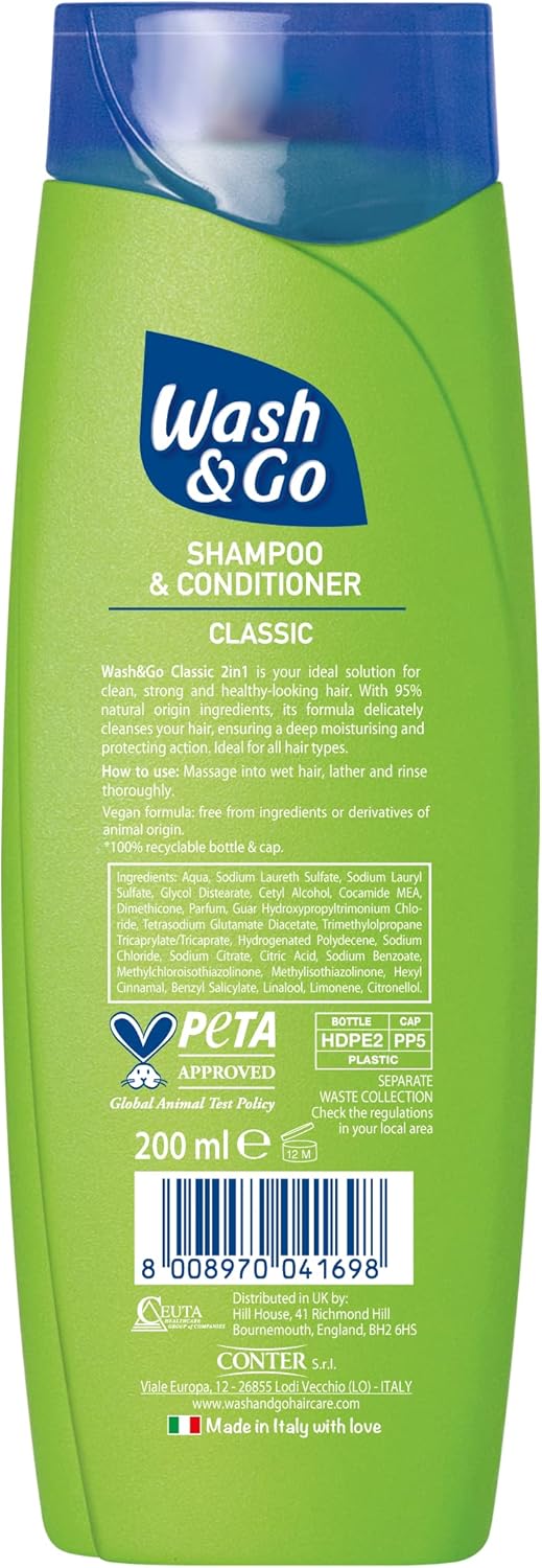 Wash & Go Classic 2 In 1 Shampoo & Conditioner, Men'S Hair Shampoo, For All Hair Types, Bulk Pack X 9 Bottles