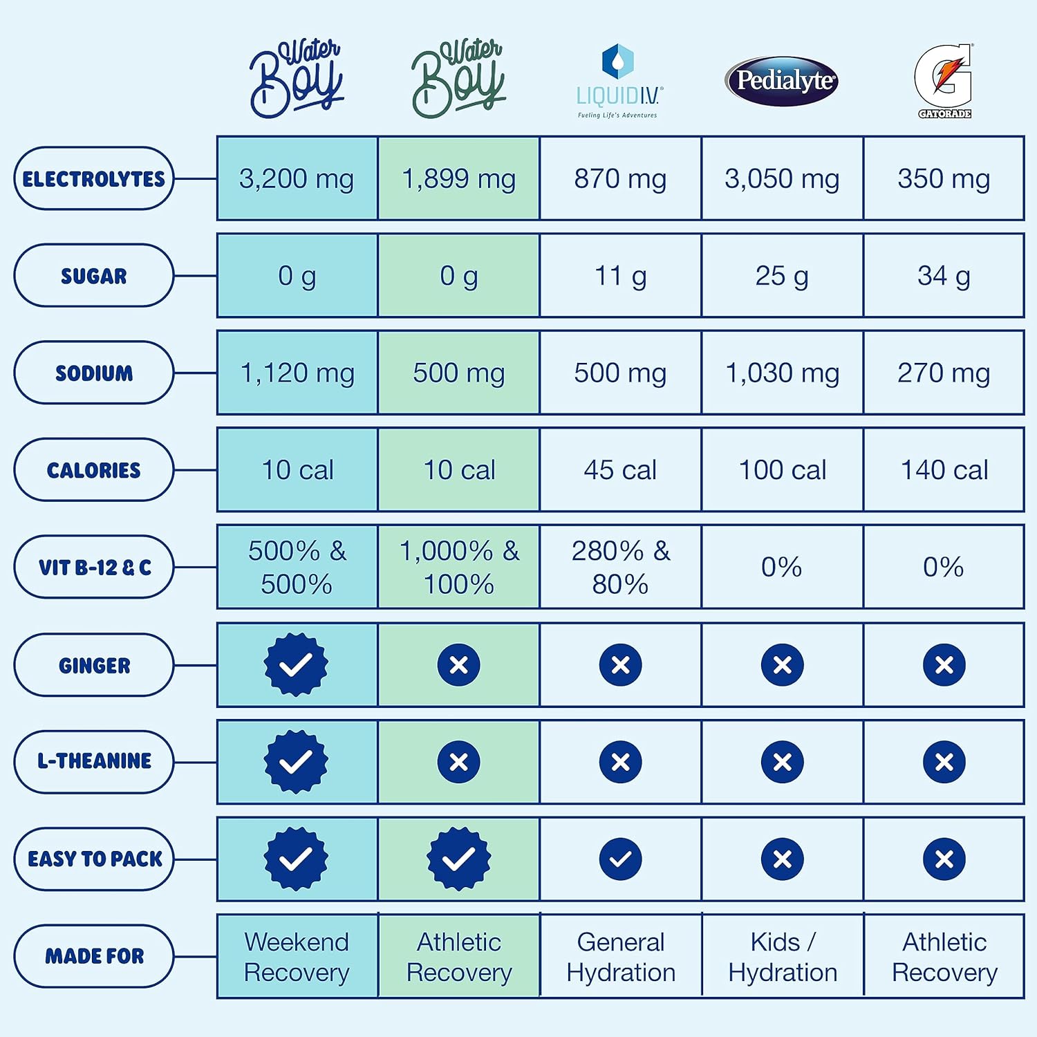 Delicious Flavors (Salty): Waterboy Hydration Packets Come In Multiple Flavors Including Strawberry Lemonade, Lemon Ginger, Lemon Lime, And Blue Raspberry So You Can Make A Delicious Recovery Drink! If You Are Bothered By Sodium, Please Be Aware Before Purchasing!