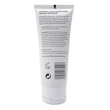 Watermans MoisturiseMe® softens and conditions hands and skin, Hand cream with Allantoin, Cupuacu butter, Shea butter, Almond Oil and Cocoa butter great for sore cracked working hands. UK made