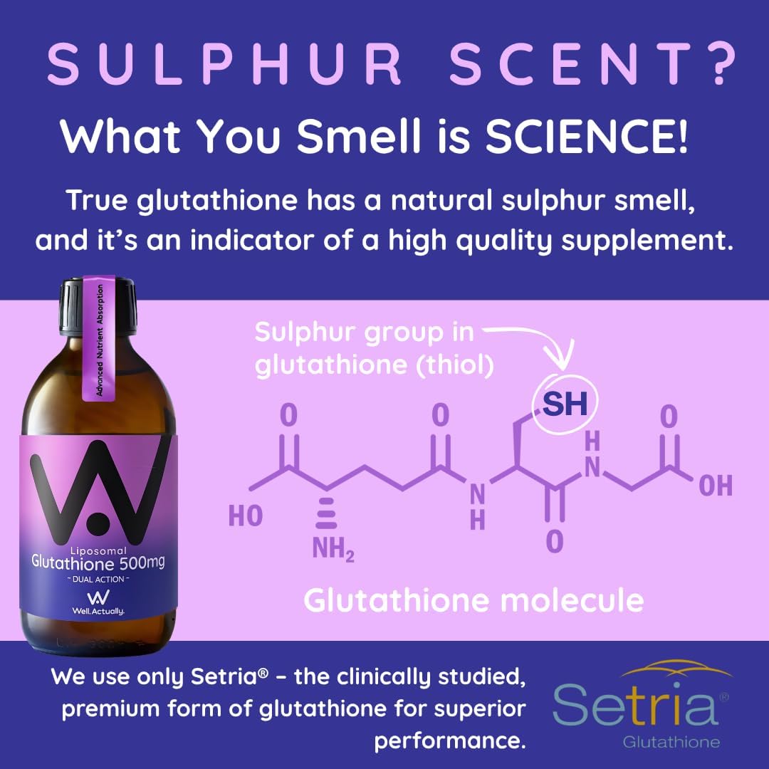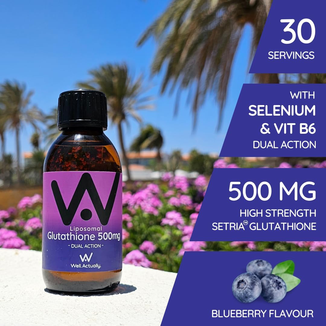 WELL ACTUALLY Liposomal Glutathione 500mg (30 Servings - 150ml) High Bioavailability Setria® Glutathione Supplement with Vitamin B6 & Selenium - Powerful Antioxidant - Vegan, Blueberry Mint Flavour : Amazon.co.uk: Health & Personal Care