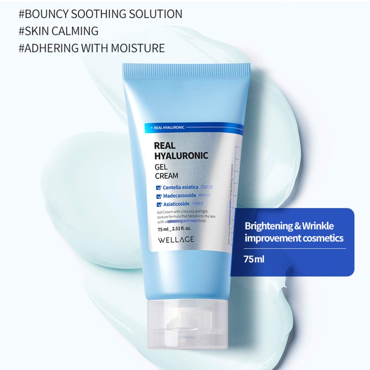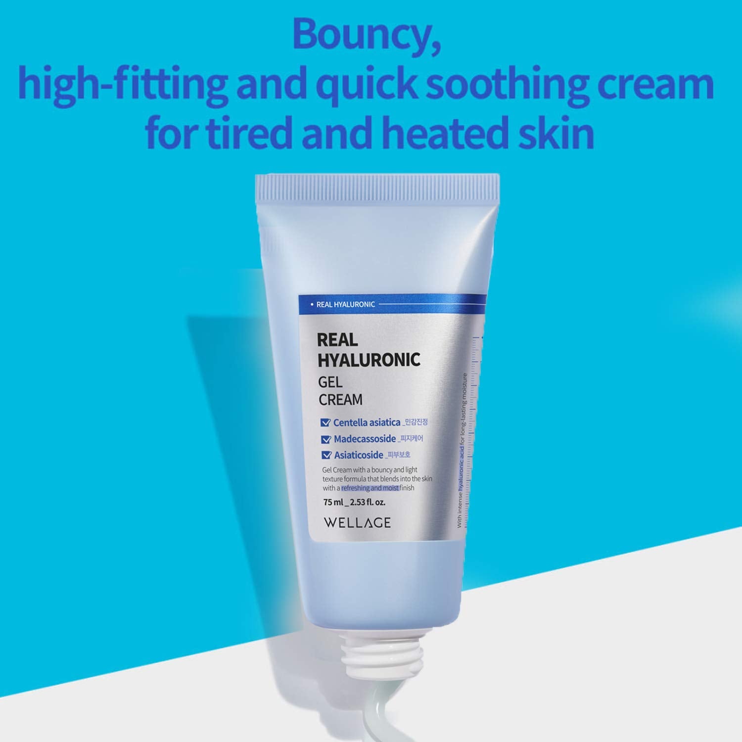 Wellage Hyaluronic Gel Cream 75Ml (2.5 Fl.Oz), Intensive Face Cream For Tired And Heated Sensitive Skin, Soothe And Moisturize, Light Formula Bouncy Gel For Wrinkle Improvement And Skin Firming