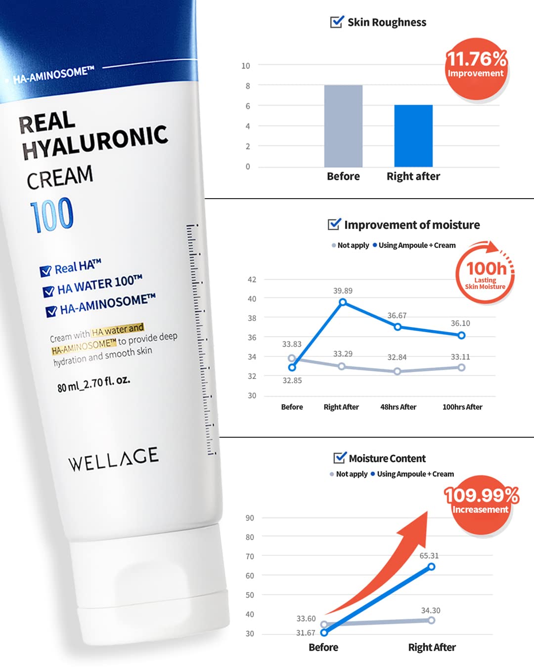 Wellage Real Hyaluronic Cream 100-100% Pure Hyaluronic Acid Face Moisturizer - Powerful Moisturizing & Firming For Dry Skin - Lightweight Gel Cream, 2.7Oz