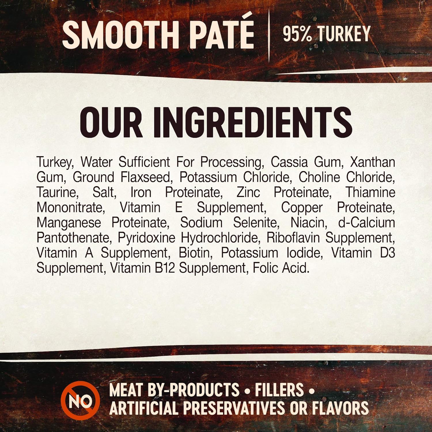 SMOOTH TURKEY PATE: This natural, grain free recipe features 95% Turkey for a complete, balanced nutrition. Pate is completely smooth for an irresistible taste your cat will love