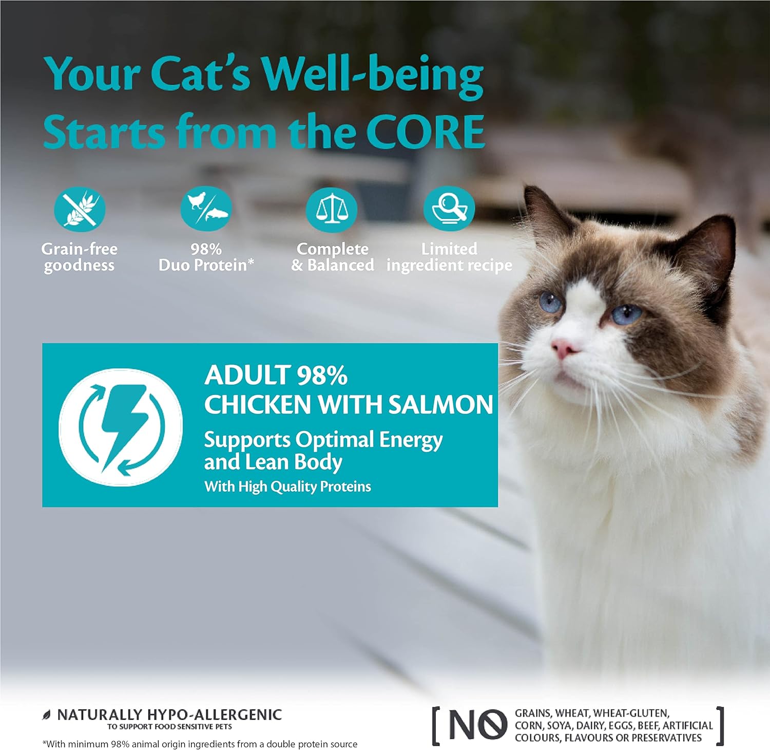 100% COMPLETE AND BALANCED: Our Wellness CORE 98% are complete and balanced, thanks to their limited ingredient recipe. For a healthy and happy cat!