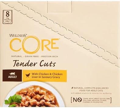 Wellness Core Tender Cuts, Wet Cat Food, Cat Food Wet With Tender Pieces In Sauce, Grain Free, High Meat Content, Chicken & Chicken Liver, 24 X 85 G10661