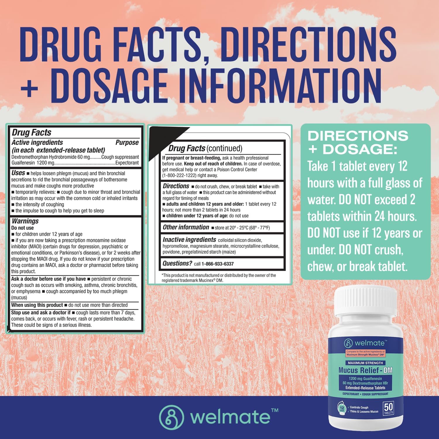 Active Ingredients: Welmate Maximum Strength Mucus Relief Dm Tablets Feature Dextromethorphan Hbr And Guaifenesin, Providing Effective Relief. Compare To The Active Ingredients Found In Maximum Strength Mucinex Dm