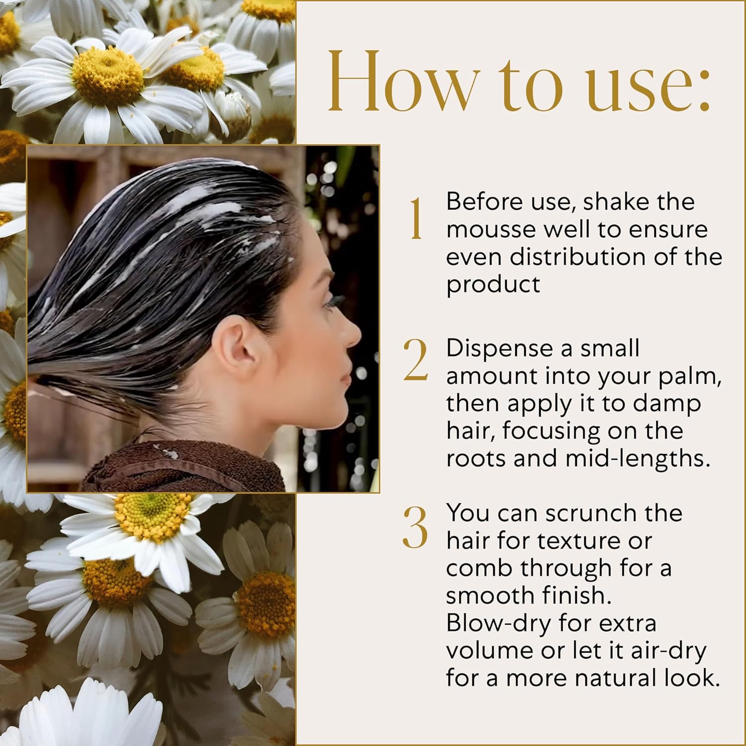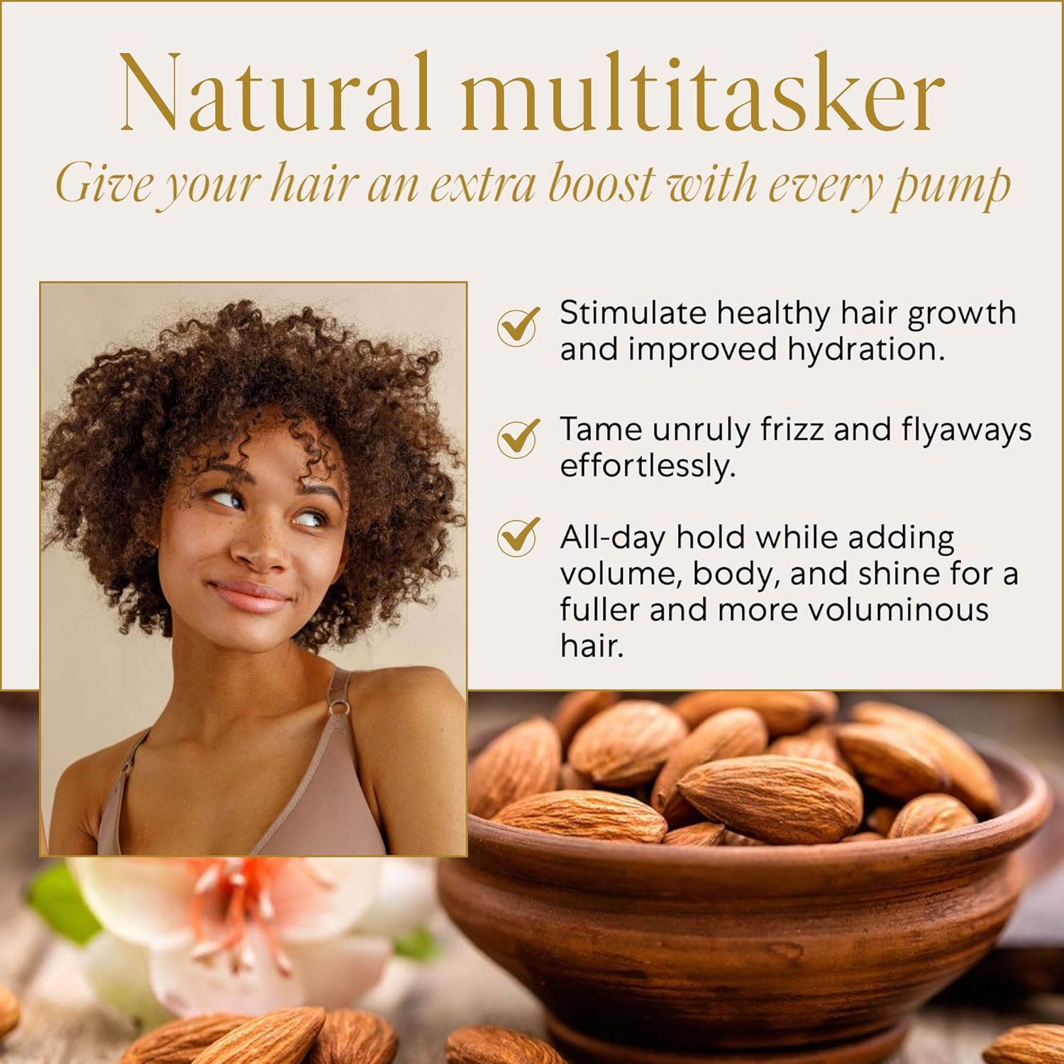 NATURAL MULTITASKER - Our Nourishing Mousse adds volume, body, and shine to every hair type. Give your hair a extra boost with every pump