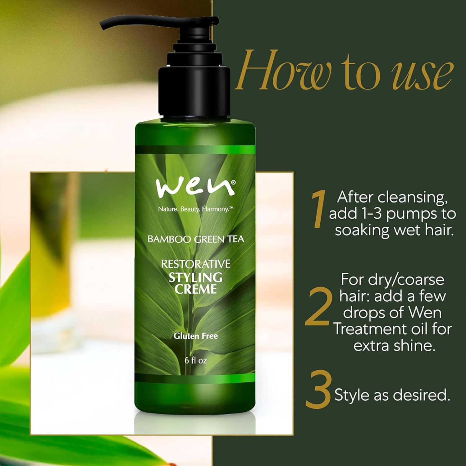 Wen By Chaz Dean Styling Creme - Styling Cream, Hair Straightener Cream For Frizzy Hair, Anti Frizz Hair Product For Styling Wavy, Curly, Straight Hair, For Men & Women - Bamboo Green Tea, 6 Fl Oz