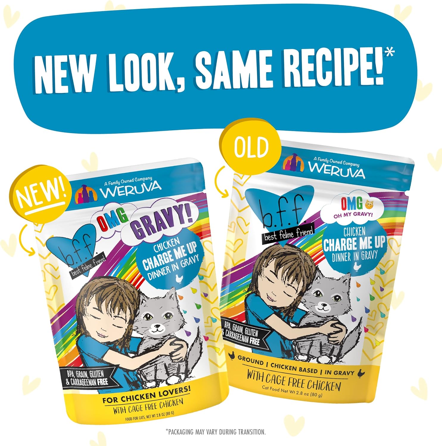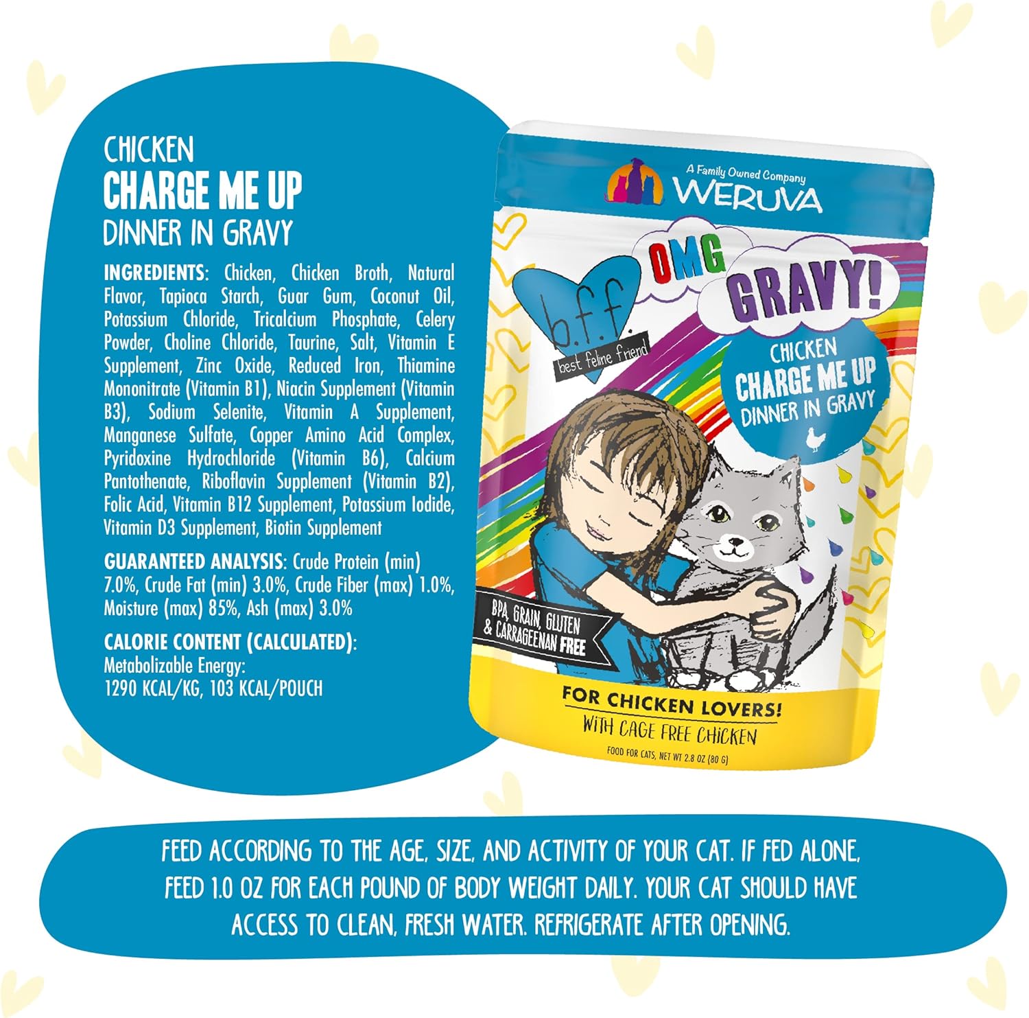 Weruva B.F.F. Omg - Best Feline Friend Oh My Gravy!, Chicken Charge Me Up With Chicken In Gravy, 2.8Oz Pouch (Pack Of 12)