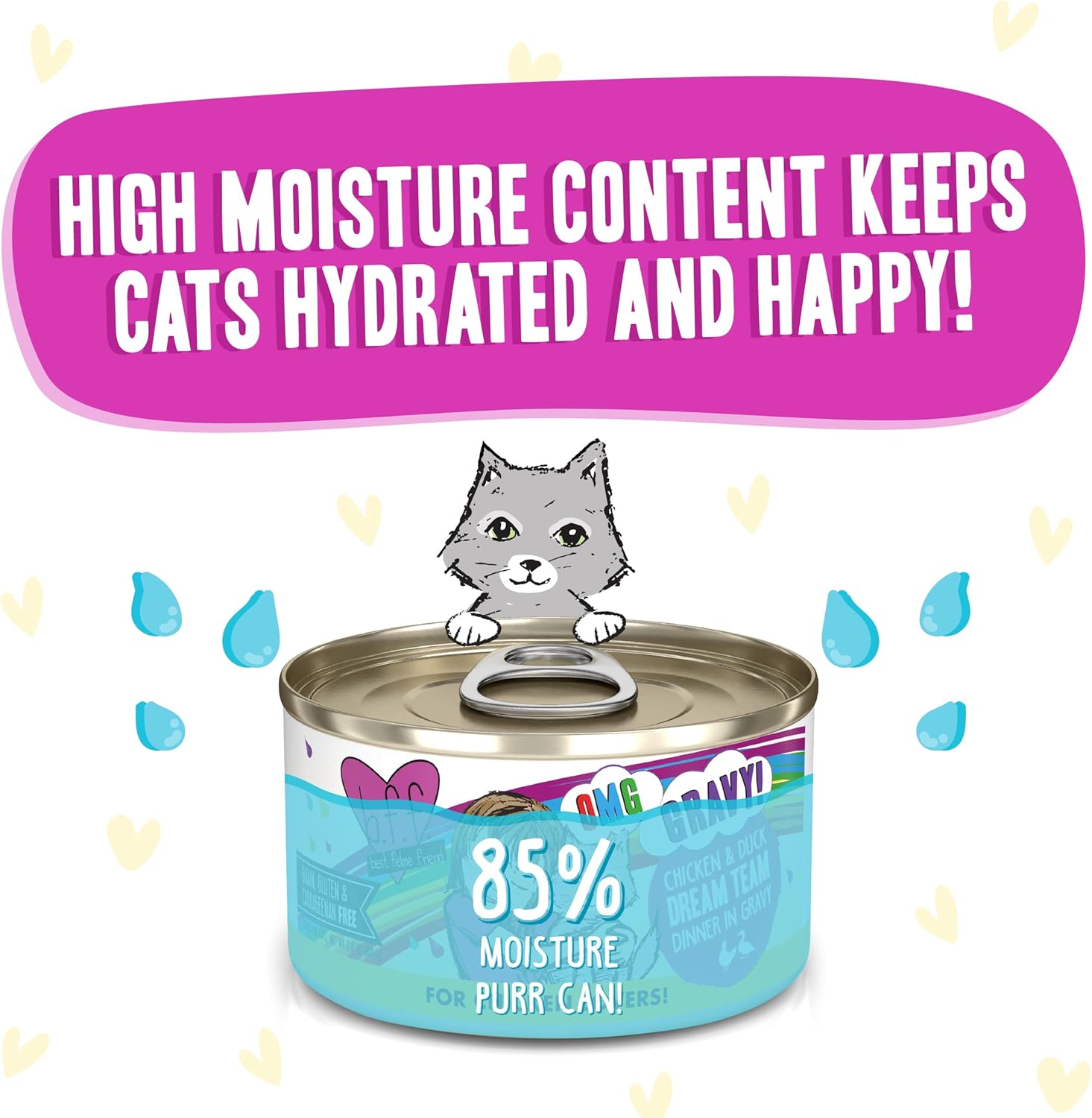 Weruva B.F.F. Omg - Best Feline Friend Oh My Gravy!, Chicken & Duck Dream Team With Chicken & Duck In Gravy, 2.8Oz Can (Pack Of 12)