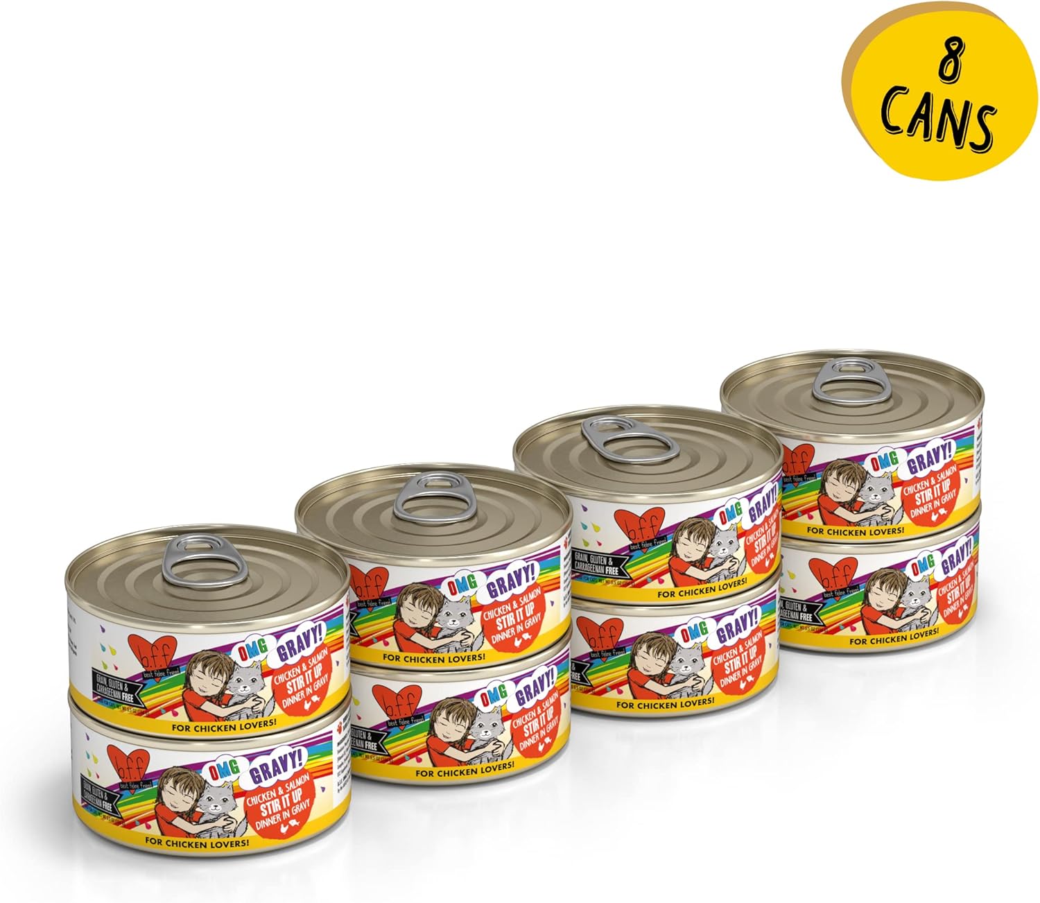 Weruva B.F.F. Omg - Best Feline Friend Oh My Gravy!, Chicken & Salmon Stir It Up With Chicken & Salmon In Gravy, 5.5Oz Can (Pack Of 8)