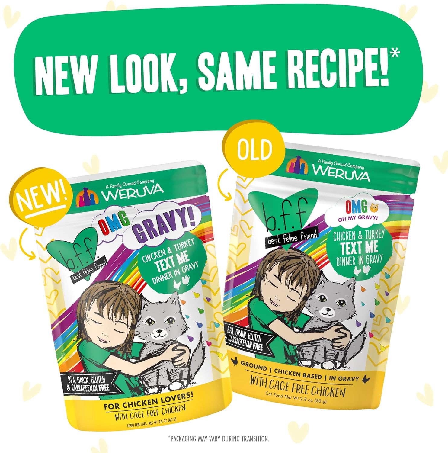 Weruva B.F.F. Omg - Best Feline Friend Oh My Gravy!, Chicken & Turkey Text Me With Chicken & Turkey In Gravy, 2.8Oz Pouch (Pack Of 12)
