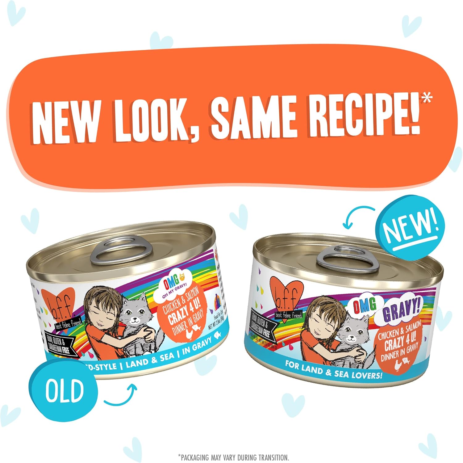 Weruva B.F.F. Omg - Best Feline Friend Oh My Gravy! Grain-Free Wet Cat Food Cans, Crazy 4 U! Chicken & Salmon, 2.8Oz Can (Pack Of 12)