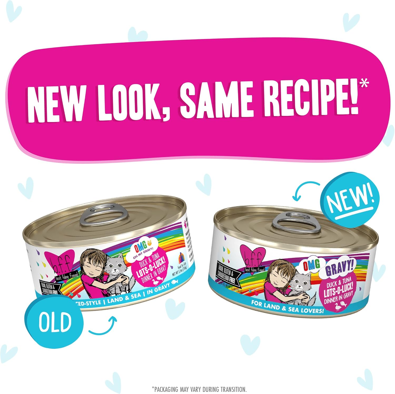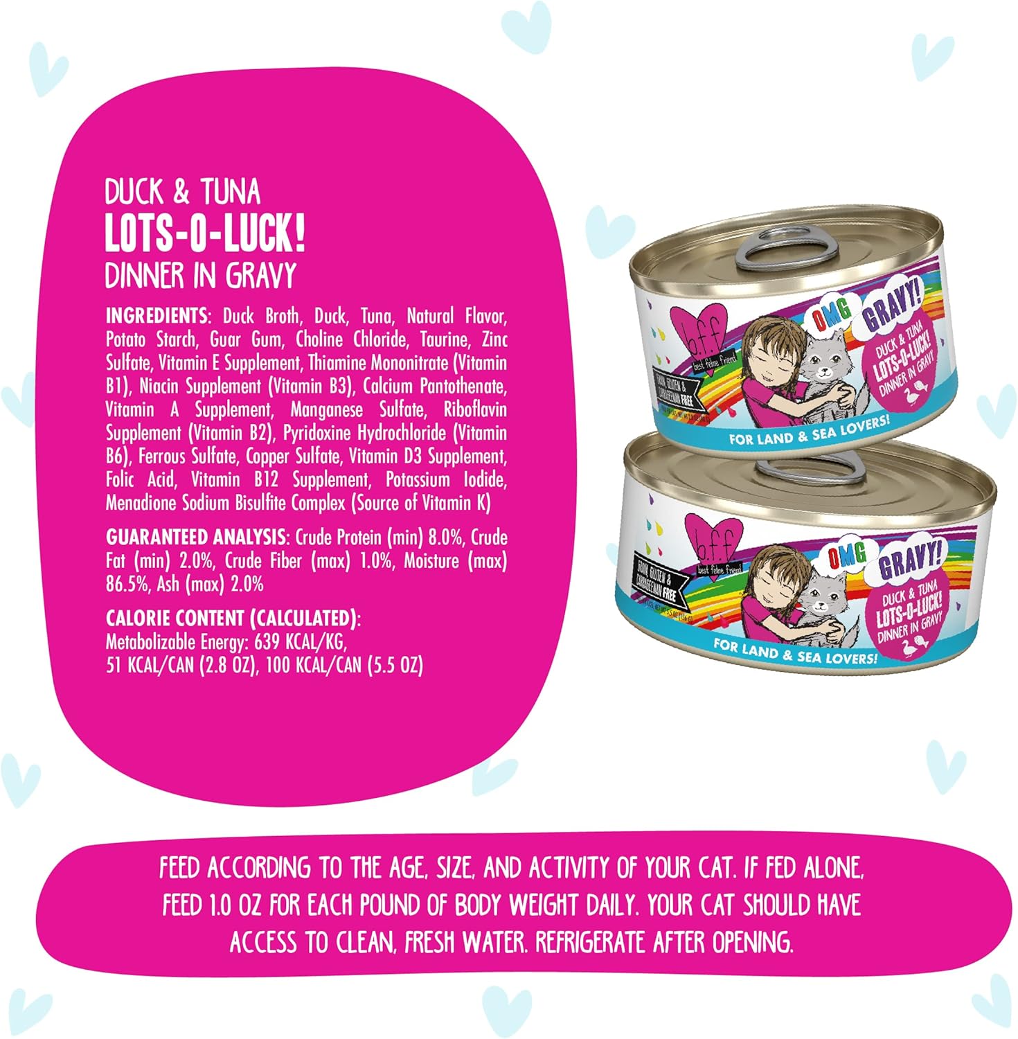 Weruva B.F.F. Omg - Best Feline Friend Oh My Gravy!, Lots-O-Luck! With Duck & Tuna In Gravy Cat Food, 5.5Oz Can (Pack Of 8)
