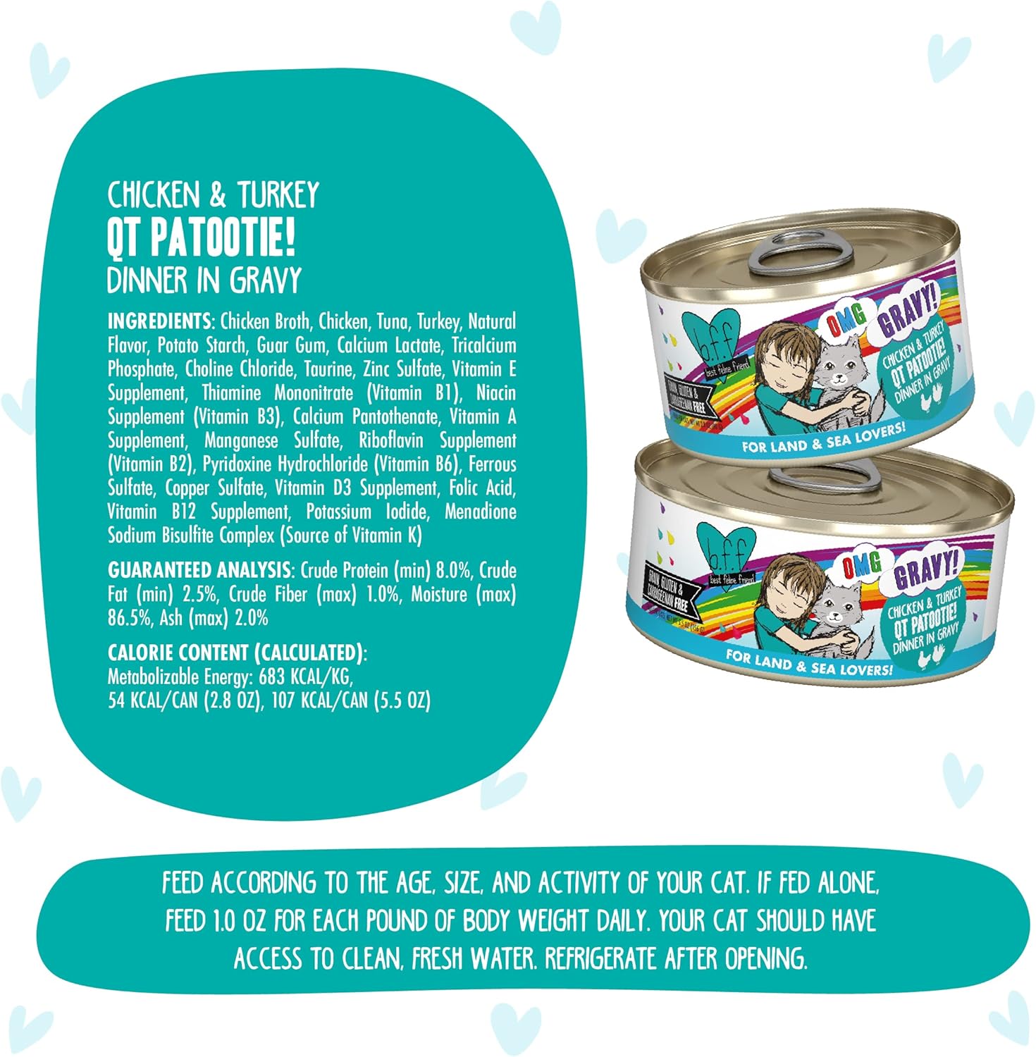 Weruva B.F.F. Omg - Best Feline Friend Oh My Gravy!, Qt Patootie! With Chicken & Turkey In Gravy Cat Food, 5.5Oz Can (Pack Of 8)