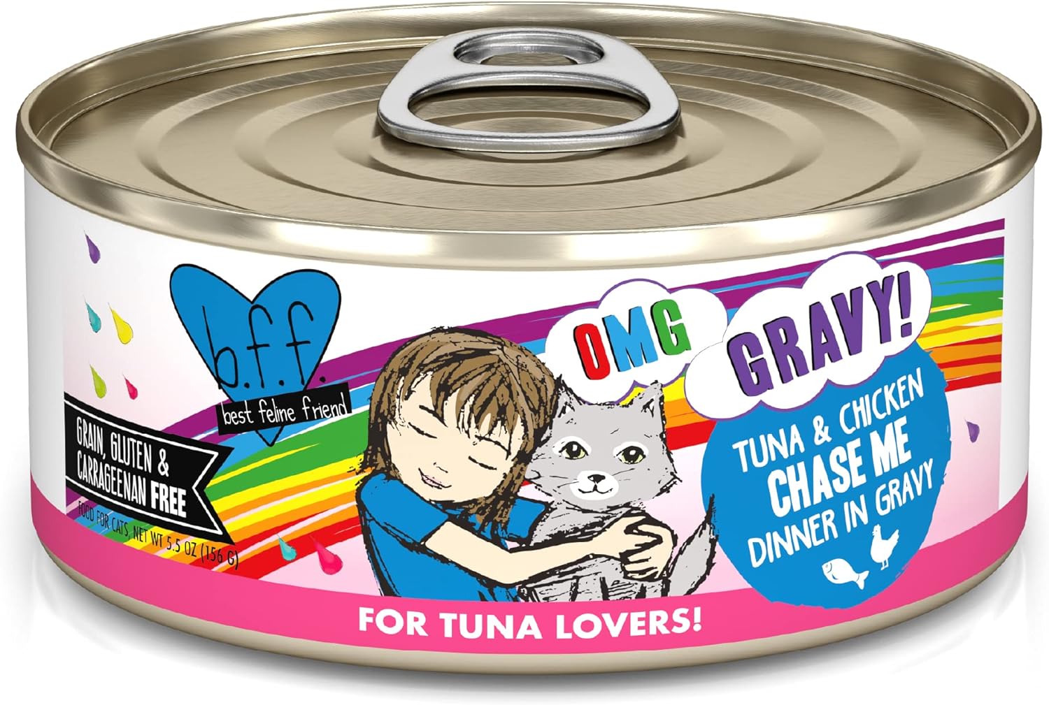 Weruva B.F.F. Omg - Best Feline Friend Oh My Gravy!, Tuna & Chicken Chase Me With Tuna & Chicken, 5.5Oz Can (Pack Of 8)