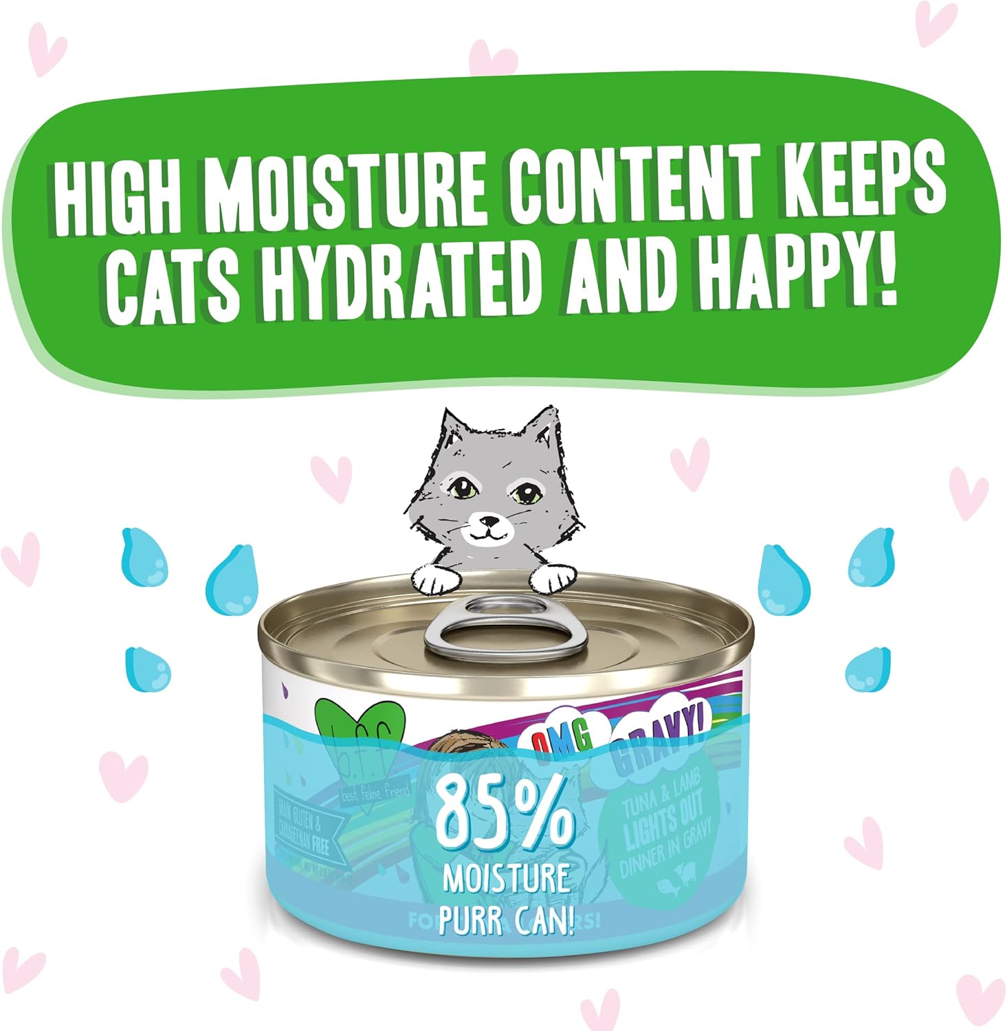 Weruva B.F.F. Omg - Best Feline Friend Oh My Gravy!, Tuna & Lamb Lights Out With Tuna & Lamb, 2.8Oz Can (Pack Of 12)