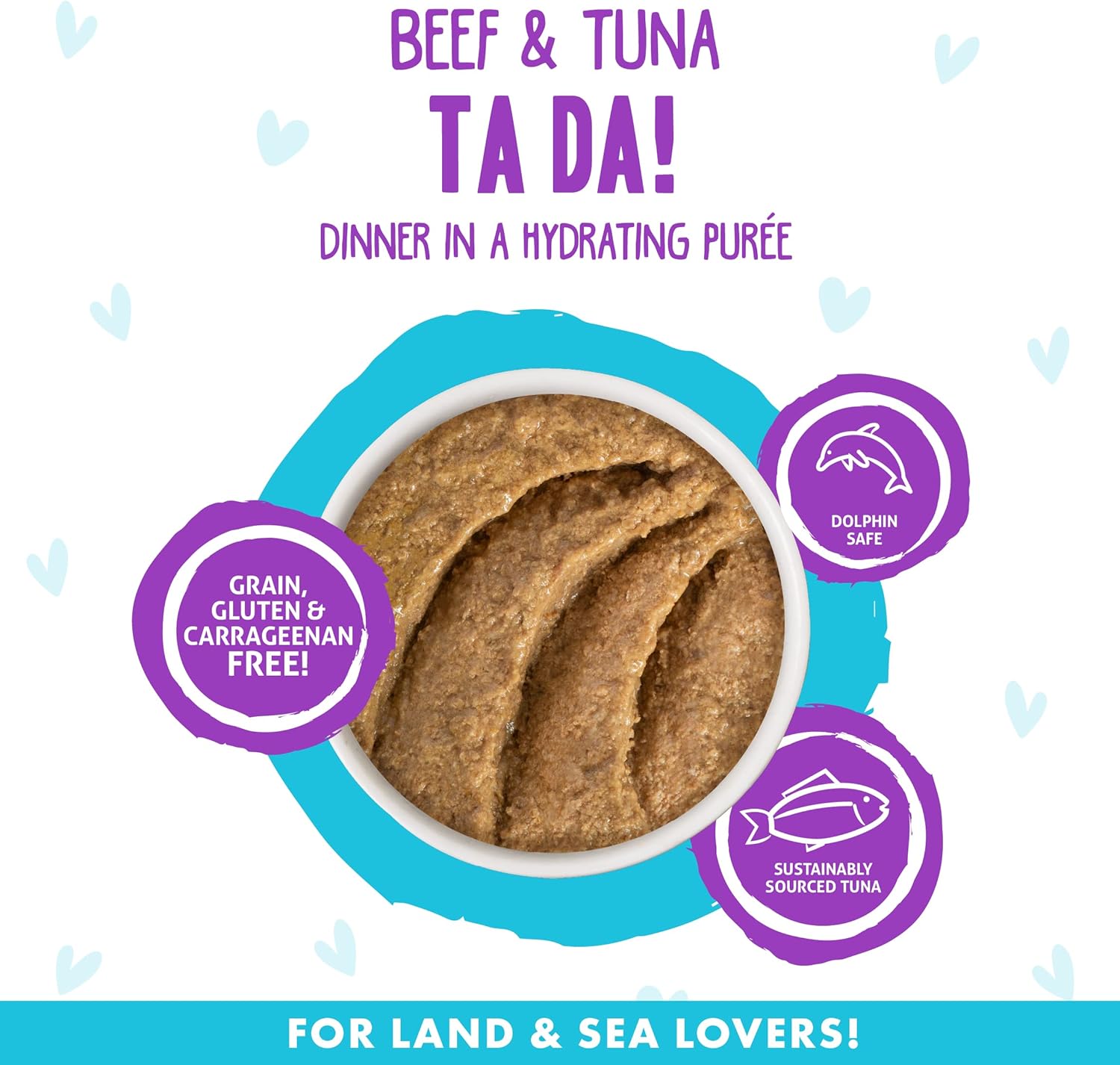 Beef & Tuna Ta Da! (3Oz Pouch, Pack Of 12) Grass-Fed Beef And Red-Meat Tuna Gently Pureed Into A Creamy And Delicious Pate! Convenient Slide N' Serve Pouch Makes Feeding Your Bff Simple
