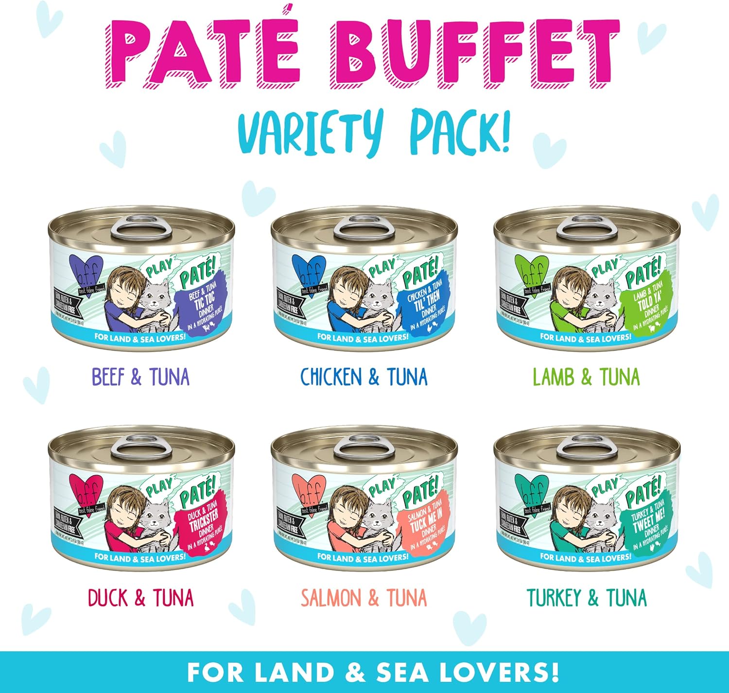B.F.F. Blue Patés Buffet! (2.8Oz Cans, Pack Of 18) A Selection Of Six (6) All-Natural Surf And Turf Recipes That Feature Cage-Free Poultry And Sustainably-Sourced Fish For Your Best Feline Friend!