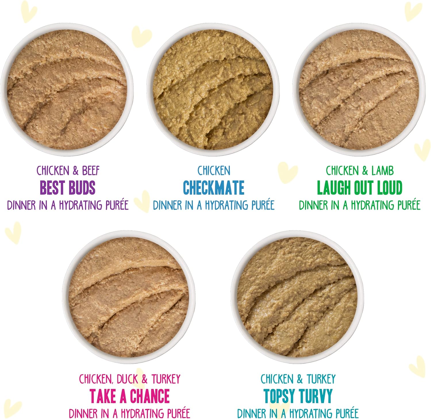 Perfect For Poultry Loving Cats! Variety Pack Includes: Chicken Checkmate,Chicken & Beef Best Buds, Chicken & Turkey Topsy Turvy, Chicken & Lamb Laugh Out Loud, Chicken, Duck & Turkey Take A Chance