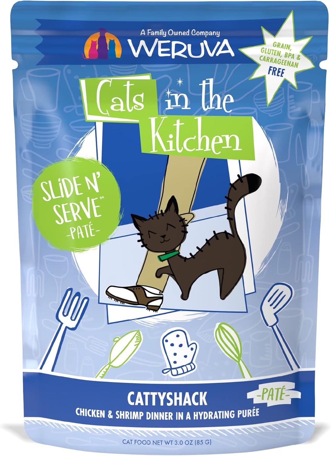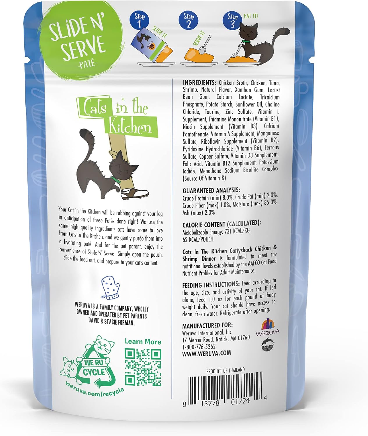 Weruva Cats In The Kitchen Slide N' Serve Grain-Free Natural Wet Pate Cat Food Pouches, Cattyshack, 3Oz Pouch (Pack Of 12)