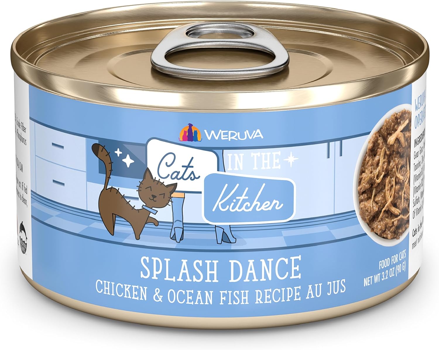 Weruva Cats In The Kitchen, Splash Dance With Chicken & Ocean Fish Au Jus Cat Food, 3.2Oz Can (Pack Of 24)