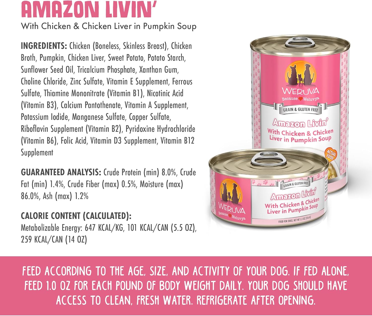 Weruva Classic Dog Food, Amazon Livin' With Chicken Breast & Chicken Liver In Pumpkin Soup, 5.5Oz Can (Pack Of 24)