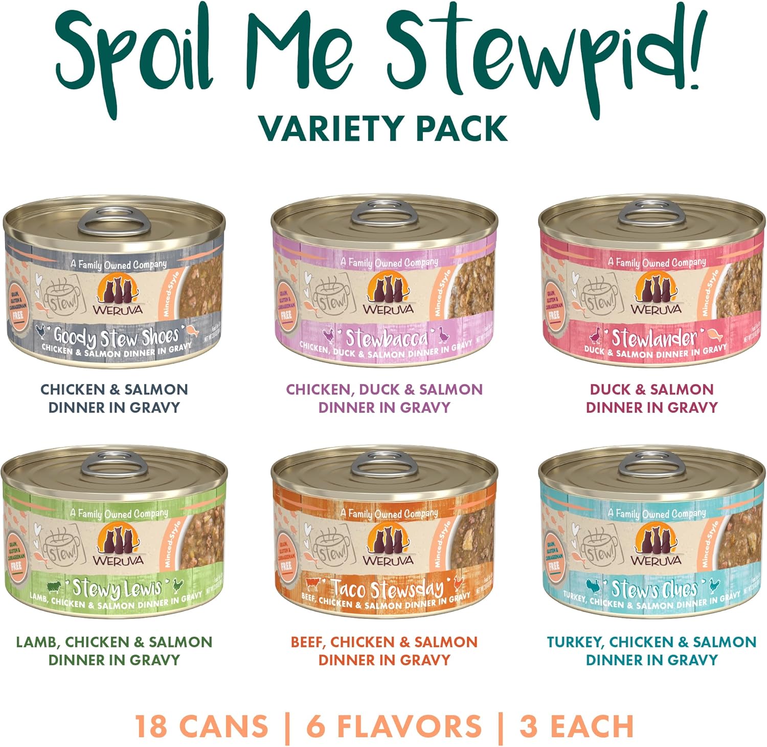 Weruva Classic Stews Cat Food, Spoil Me Stewpid! Variety Pack, 3Oz Can (Pack Of 18)