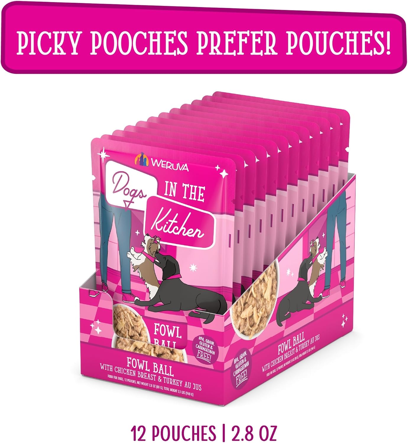 Weruva Dogs In The Kitchen, Fowl Ball With Chicken Breast & Turkey Au Jus Dog Food, 2.8Oz Pouch (Pack Of 12)