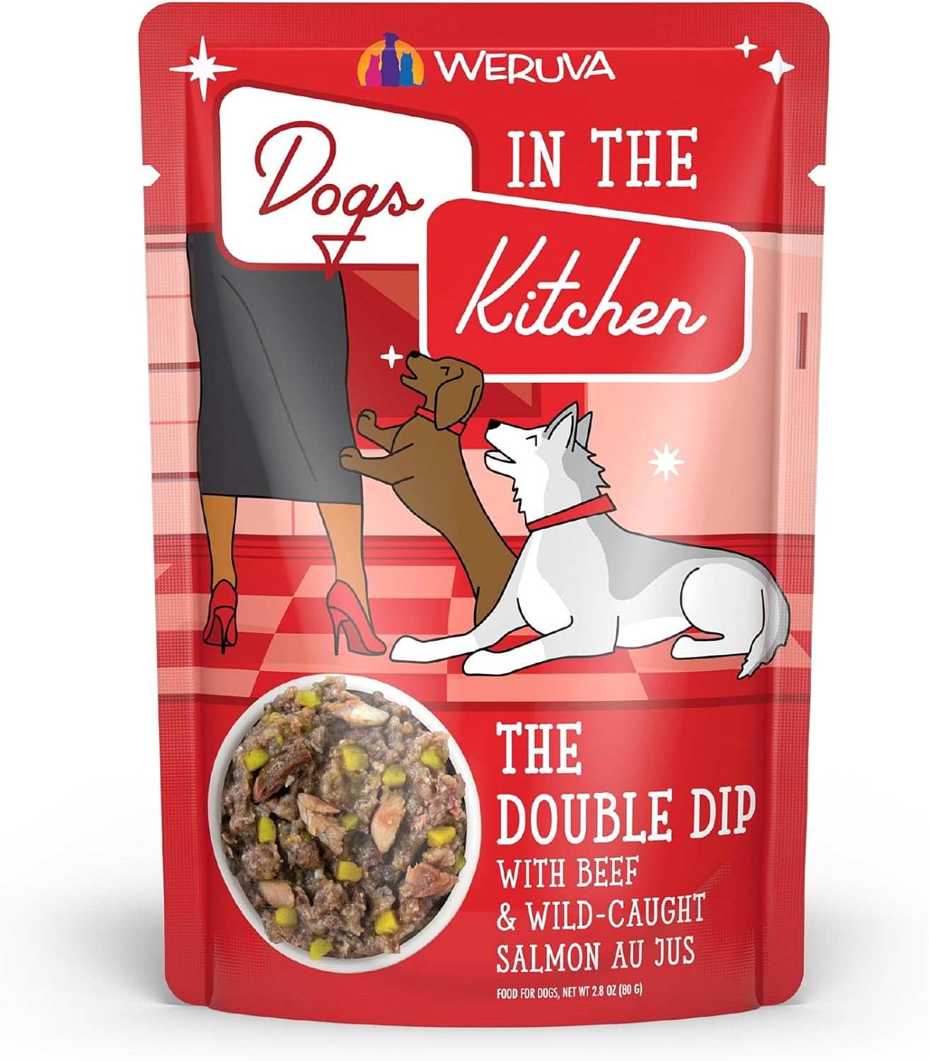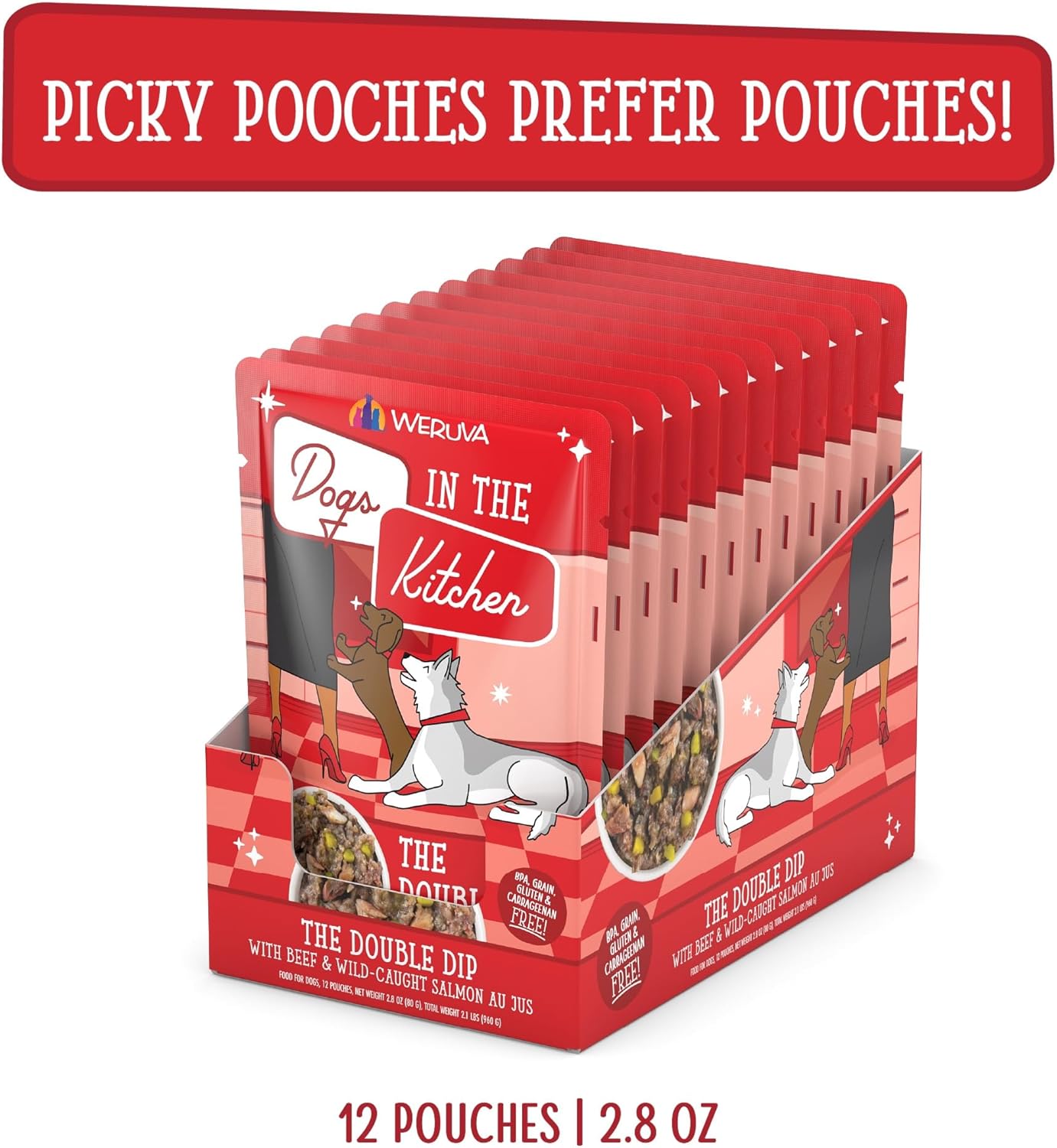 Weruva Dogs In The Kitchen, The Double Dip With Beef & Wild-Caught Salmon Au Jus Dog Food, 2.8Oz Pouch (Pack Of 12), Red