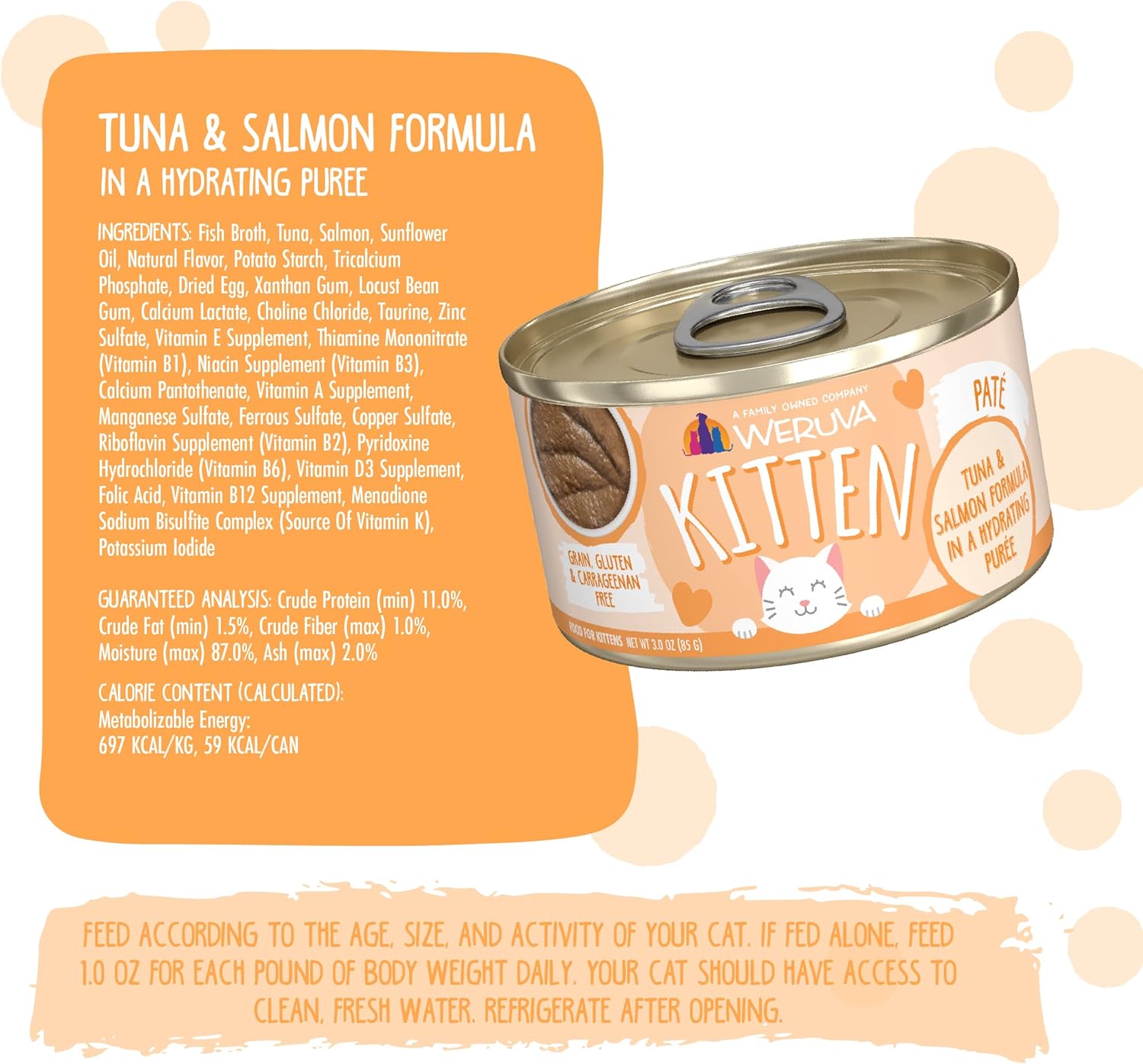 Weruva Kitten, Tuna & Salmon Formula In A Hydrating Purée 3Oz Can (Pack Of 12)