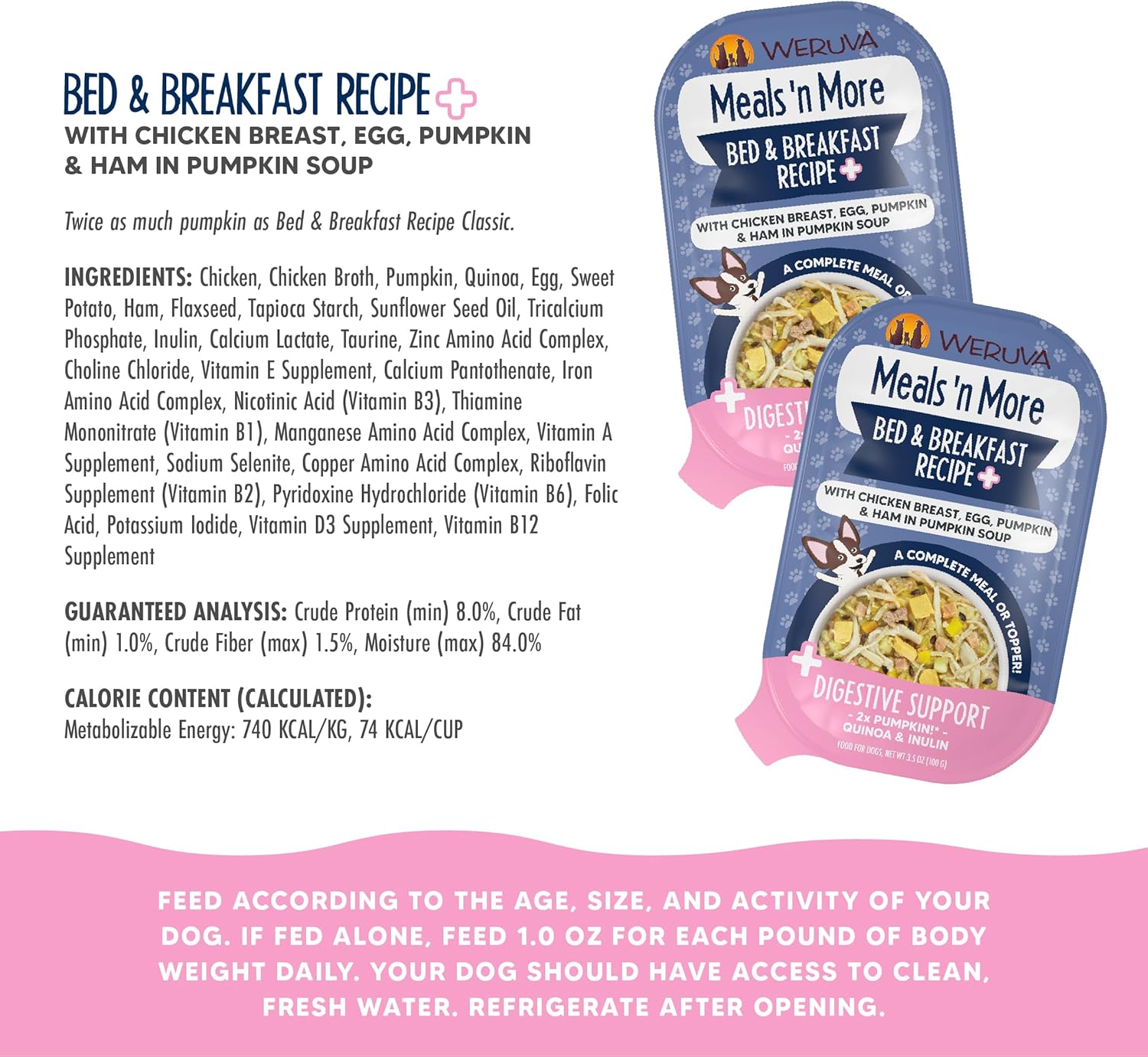 Weruva Meals 'N More Natural Wet Dog Food, Bed & Breakfast Plus Digestive Support, 3.5Oz Cup (Pack Of 12)