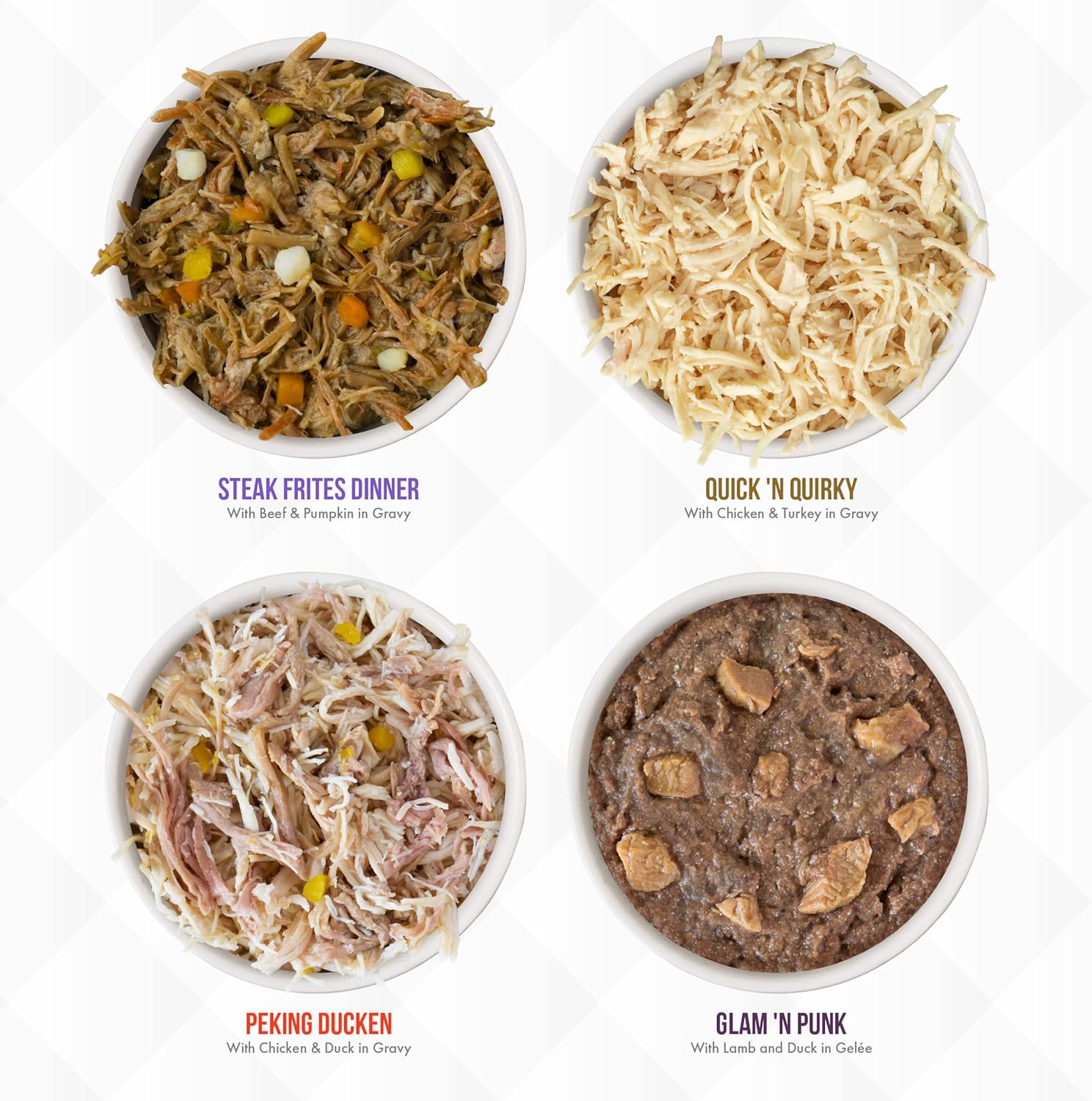 Variety Pack Includes 6 Each Of: Steak Frites, Peking Ducken, Quick & Quirky, And Glam & Punk