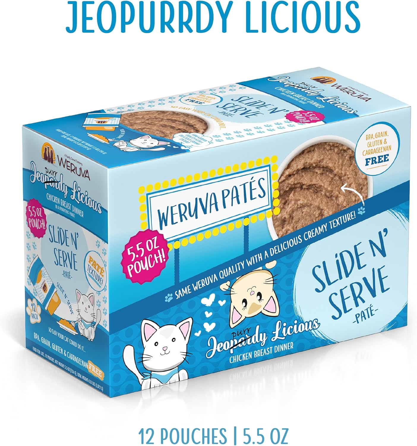 Weruva Wet Cat Food, Jeopurrdy Licious With Chicken Pate, 5.5Oz Slide N Serve Pouch, Pack Of 12