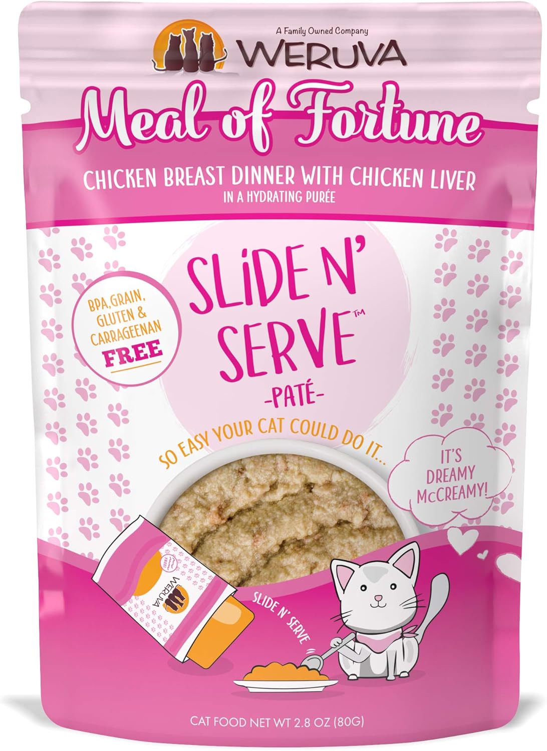 Weruva Wet Cat Food, Meal Of Fortune Chicken With Chicken Liver Pate, 2.8Oz Slide N Serve Pouch, Pack Of 12