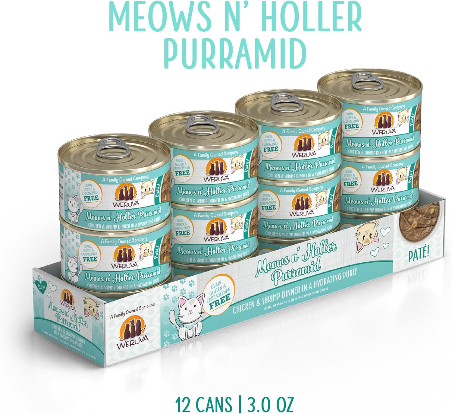 Weruva Wet Cat Food, Meows N Holler Purramid With Chicken And Shrimp Pate, 3Oz Can, Pack Of 12