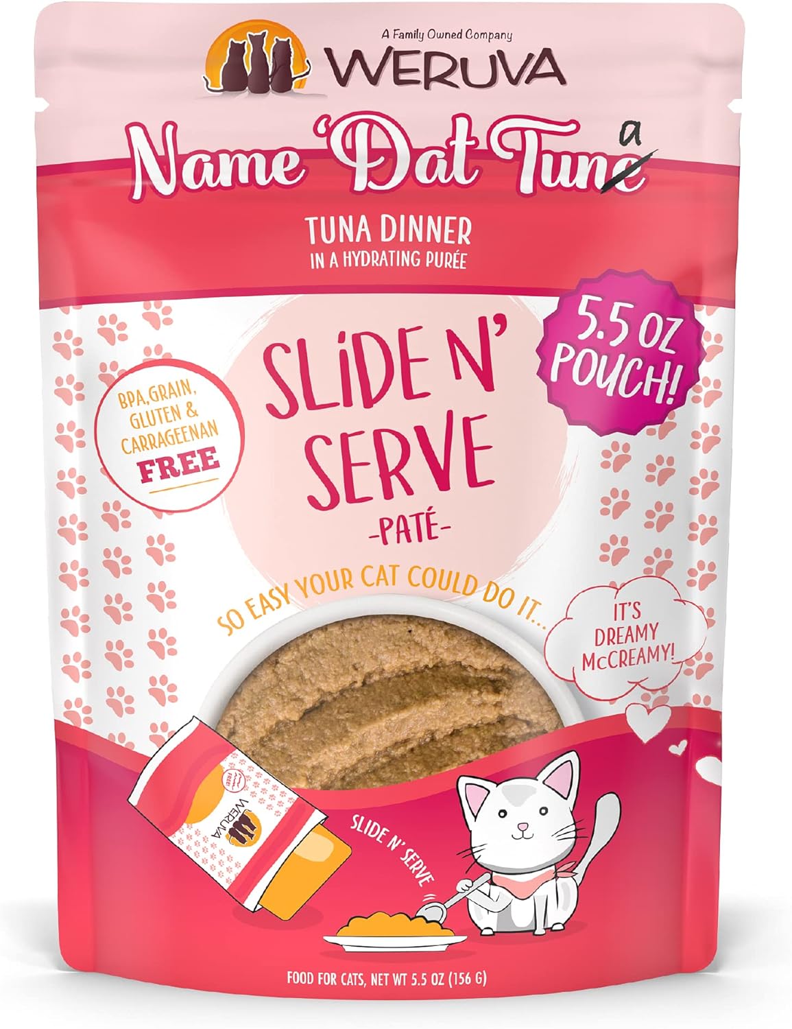 Weruva Wet Cat Food, Name Dat Tuna With Tuna Pate, 5.5Oz Slide N Serve Pouch, Pack Of 12
