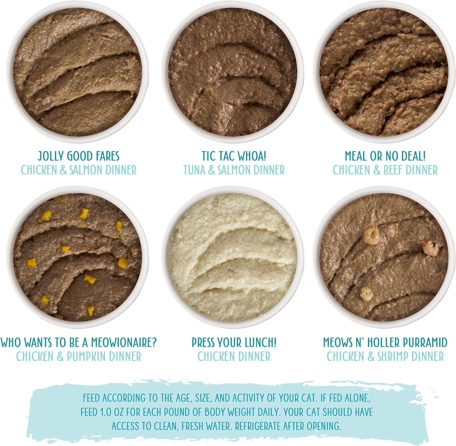 The Mix And Match Game Variety Pack. Pick A New Pate, Everyday. Includes All Six Weruva Canned Pate Cat Food Recipes, Three Of Each