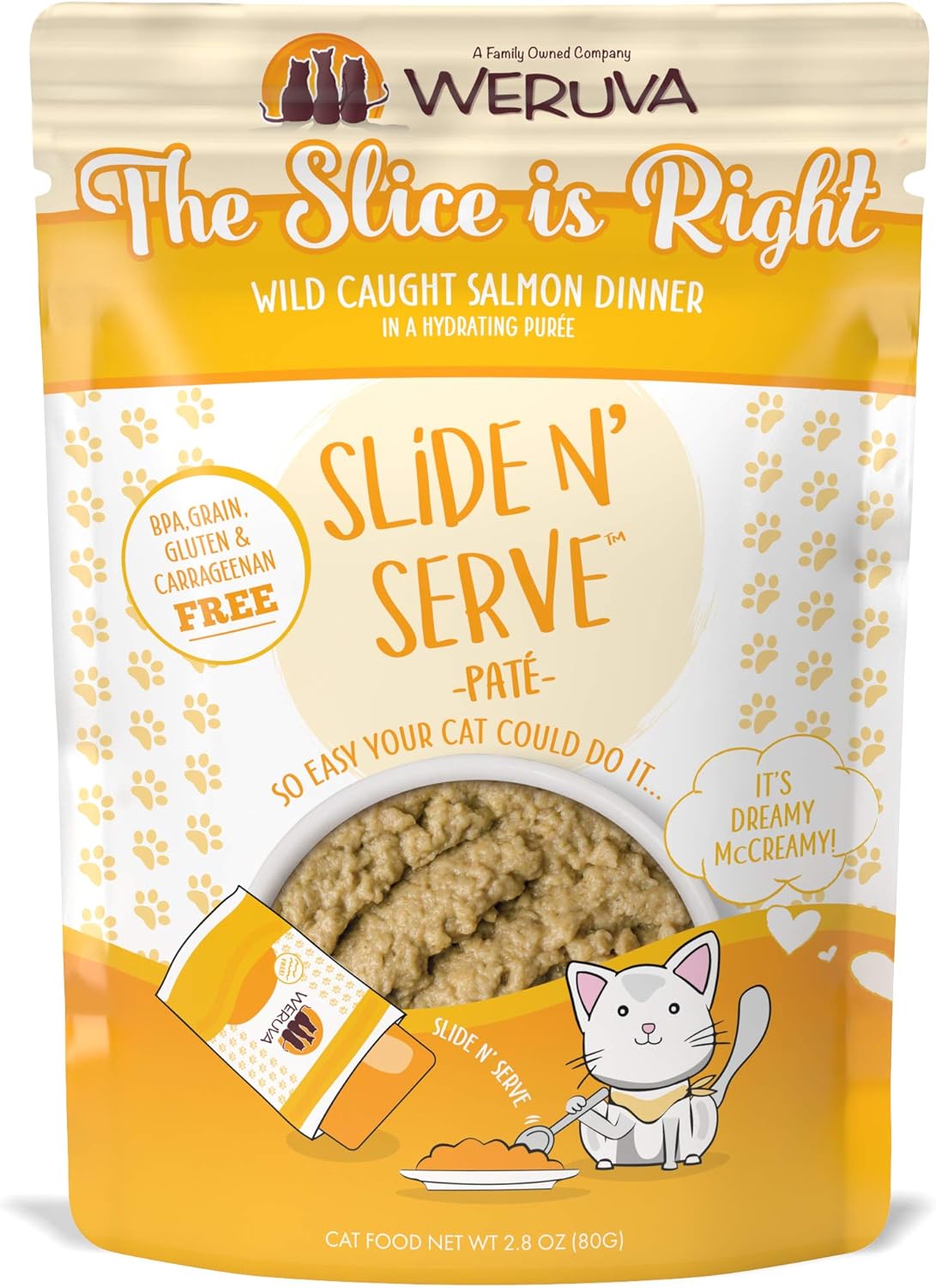 Weruva Wet Cat Food, The Slice Is Right With Wild Caught Salmon Pate, 2.8Oz Slide N Serve Pouch, Pack Of 12