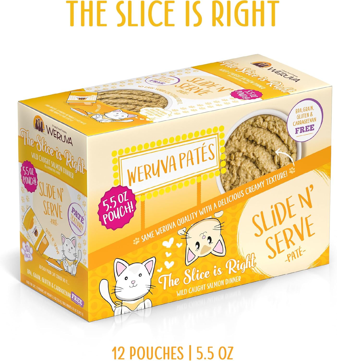 Weruva Wet Cat Food, The Slice Is Right With Wild Caught Salmon Pate, 5.5Oz Slide N Serve Pouch, Pack Of 12