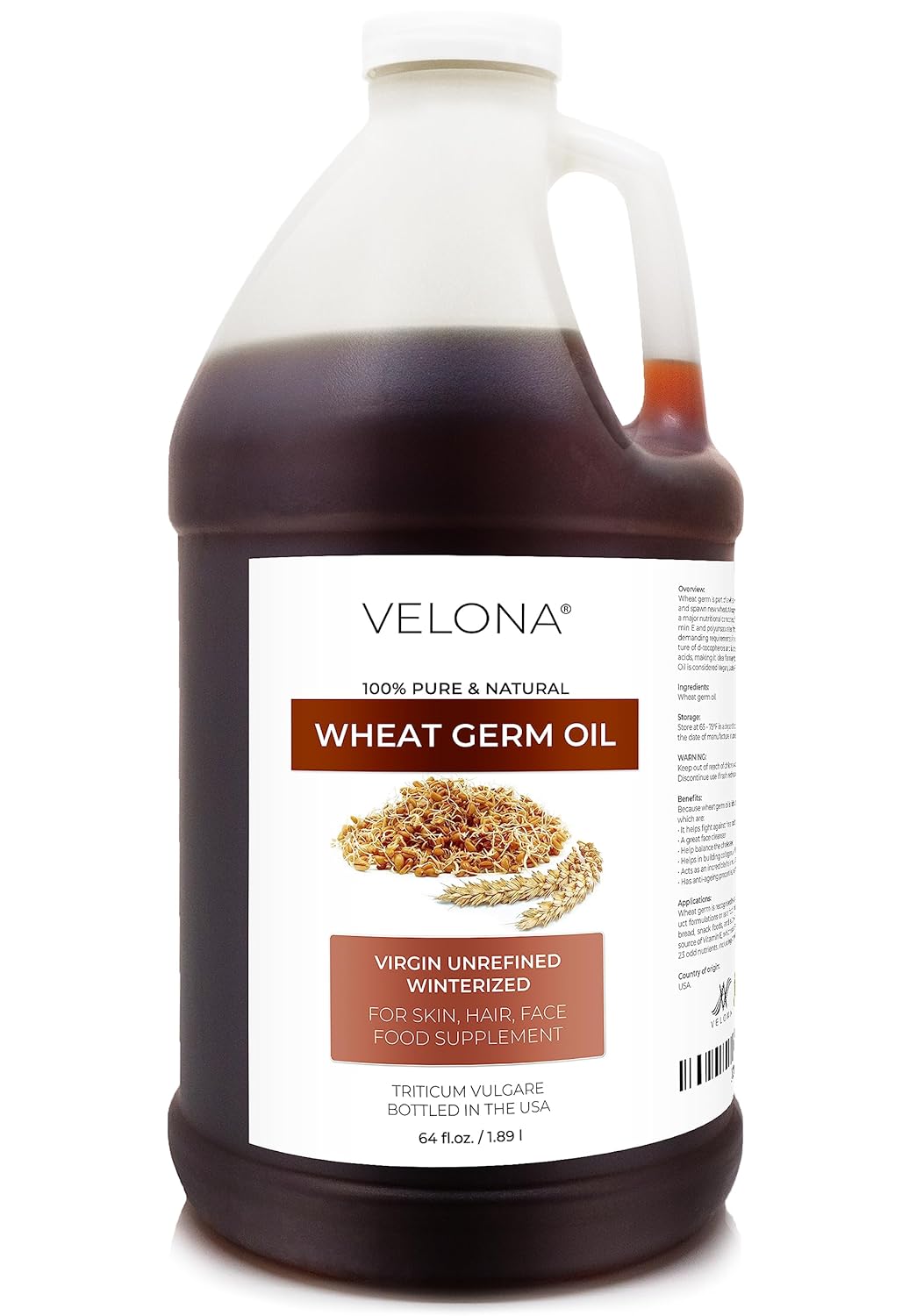 Wheat Germ Oil USP Grade by Velona - 64 oz | 100% Pure and Natural Carrier Oil | Unrefined, Winterized | Cooking, Face, Hair, Body & Skin Care | Use Today - Enjoy Result