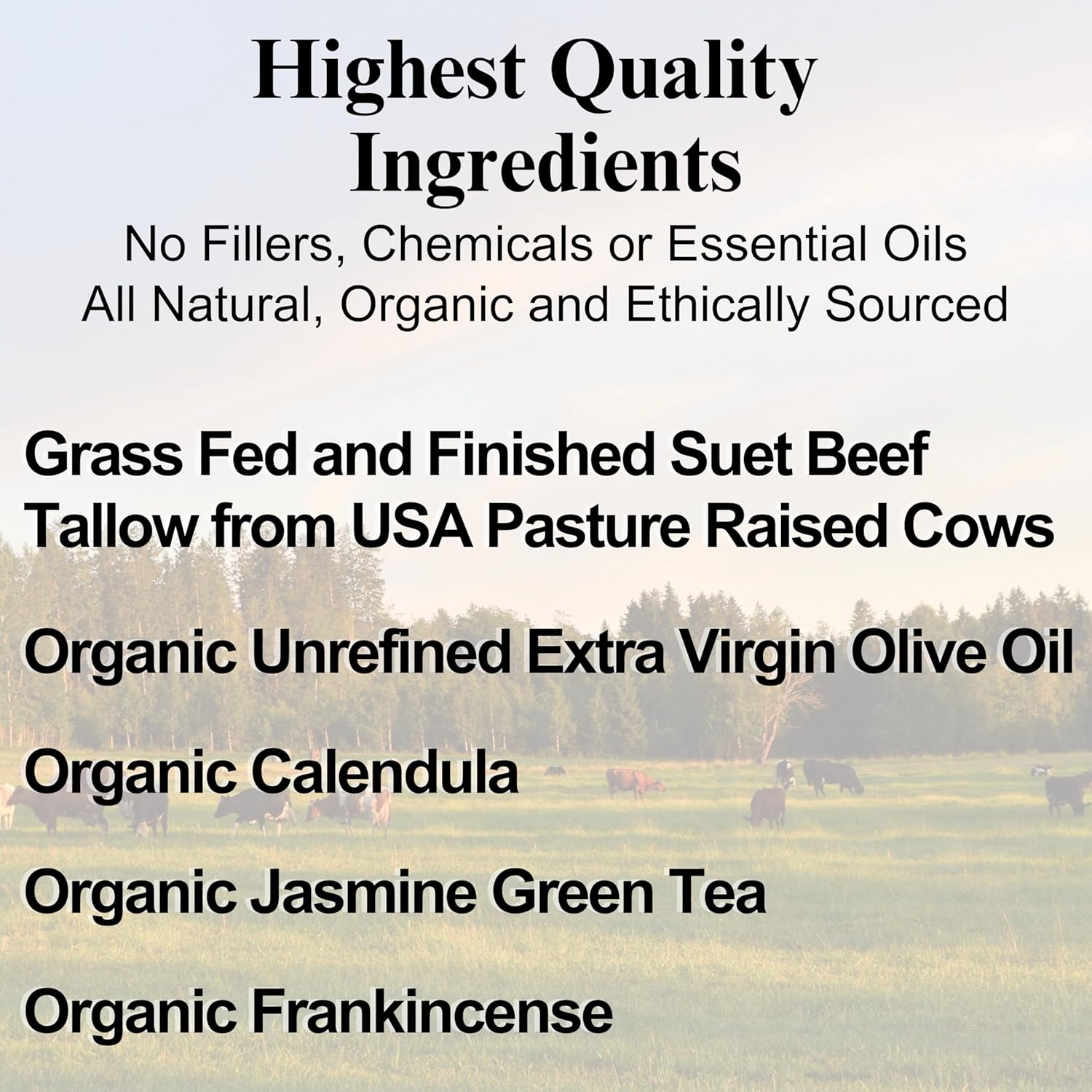 Herb-Infused, Vitamin-Rich Moisturizer: Our grass-fed tallow balm is infused with organic calendula, jasmine green tea, and frankincense—herbs known to support skin renewal and elasticity. Combined with vitamins A, D, E, and K, it helps smooth the appearance of fine lines and wrinkles—naturally, with no synthetic ingredients or preservatives