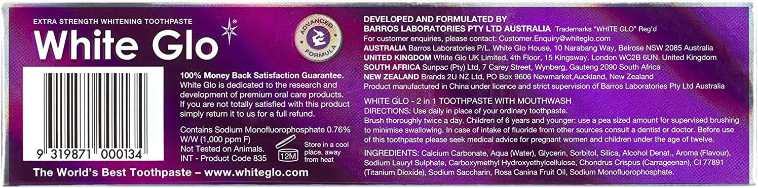 White Glo 2-In-1 Whitening Toothpaste With Mouthwash, 100 Ml, Pack Of 6