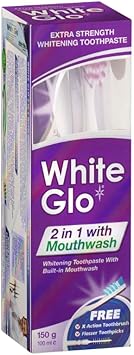 White Glo 2In1 With Mouthwash Whitening Toothpaste 100Ml &Toothbrush (With Sanitral 50 Pcs Dental Floss Stick Included As A Gift)