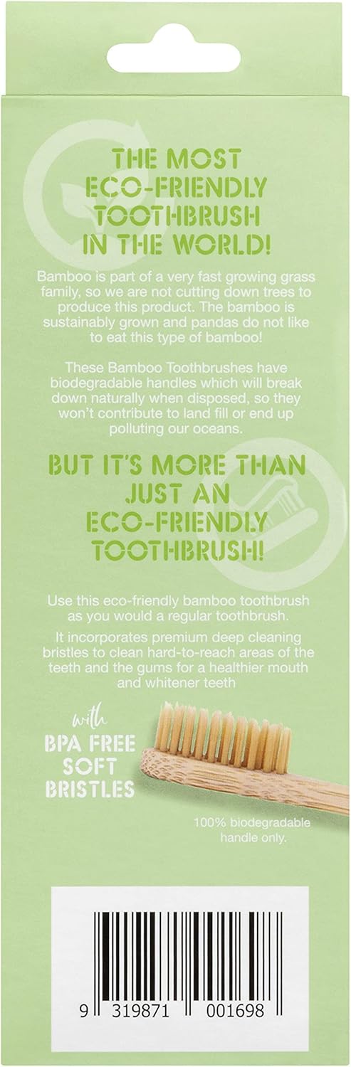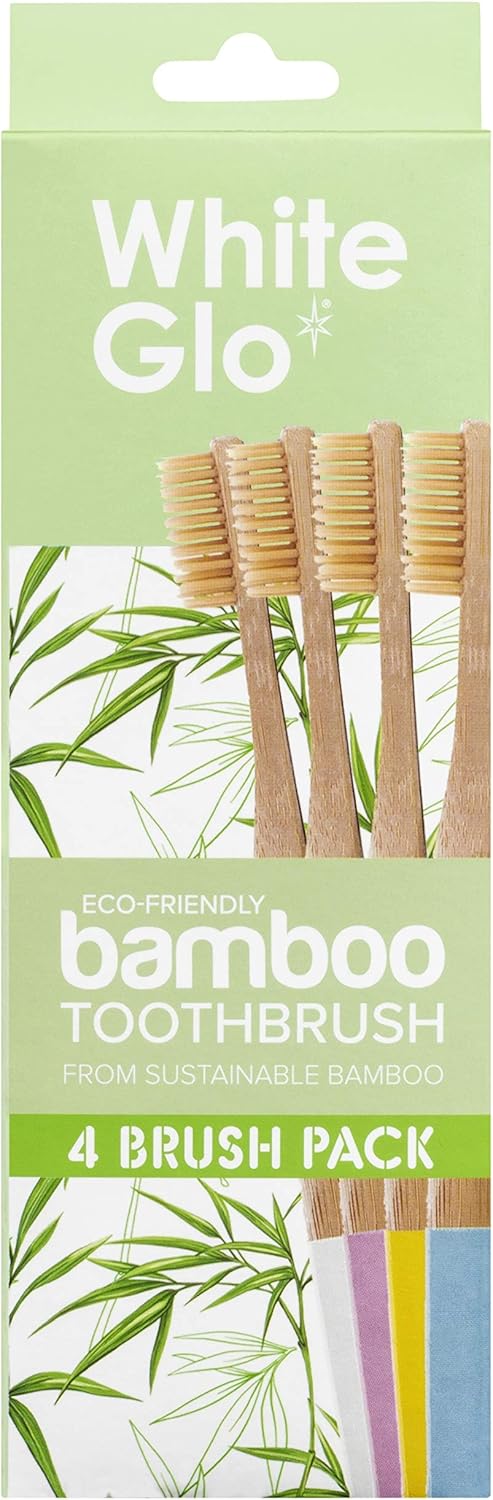 Product description ENVIRONMENTALLY CONSCIOUS WITH SUSTAINABLY SOURCED BAMBOO: Over 1 billion plastic toothbrushes are dumped into landfill in just the United States alone! Bamboo is part of a very fast growing grass family so we aren't cutting down trees to produce our eco-friendly bamboo toothbrush. White Glo has taken everything into consideration to create the most earth friendly bamboo toothbrush with our bamboo being sustainably grow. We even factored in pandas who do not like eating this particular type of bamboo! Safety Warning WARNING: Not intended for use by children under 3 years of age. Keep out of reach of children. Do not use for purposes other than oral hygiene,RECYCLABLE, BIODEGRADABLE, ECO-FRIENDLY: White Glo's environmentally conscious bamboo toothbrushes are the most eco-friendly in the world. With 100% biodegradable handles, these bamboo toothbrushes will break down naturally when disposed, so they will not contribute to landfill or end up polluting our oceans,IT'S MORE THAN JUST AN ECO-FRIENDLY TOOTHBRUSH: Our Eco-Friendly Bamboo Toothbrush incorporates premium, soft, BPA Free, deep cleaning bristles to clean hard to reach areas of the teeth and gums for a healthier mouth and whiter teeth. Our extra soft bristles protect your gums from bleeding and scratching so you can comfortably brush without worry,EASILY DISTINGUISHABLE HANDLES: Our Eco Friendly Bamboo Tootbrushes have colored handles to easily identify your toothbrush! Share them around with your friends, housemates and family without any worry of mixing them up!,YOUR MOST CONFIDENT SMILE AWAITS: It all starts with a smile. Back in 1993, White Glo was developed for Aussies in the spotlight. But secrets this good are never kept quiet for long so here we are, ready to help you unleash your most confident smile!