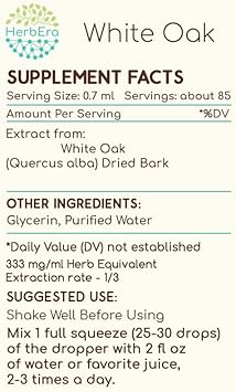 White Oak B120 Alcohol-Free Herbal Extract Tincture, Concentrated Liquid Drops Natural White Oak (Quercus Alba) Dried Bark (4 Fl Oz)